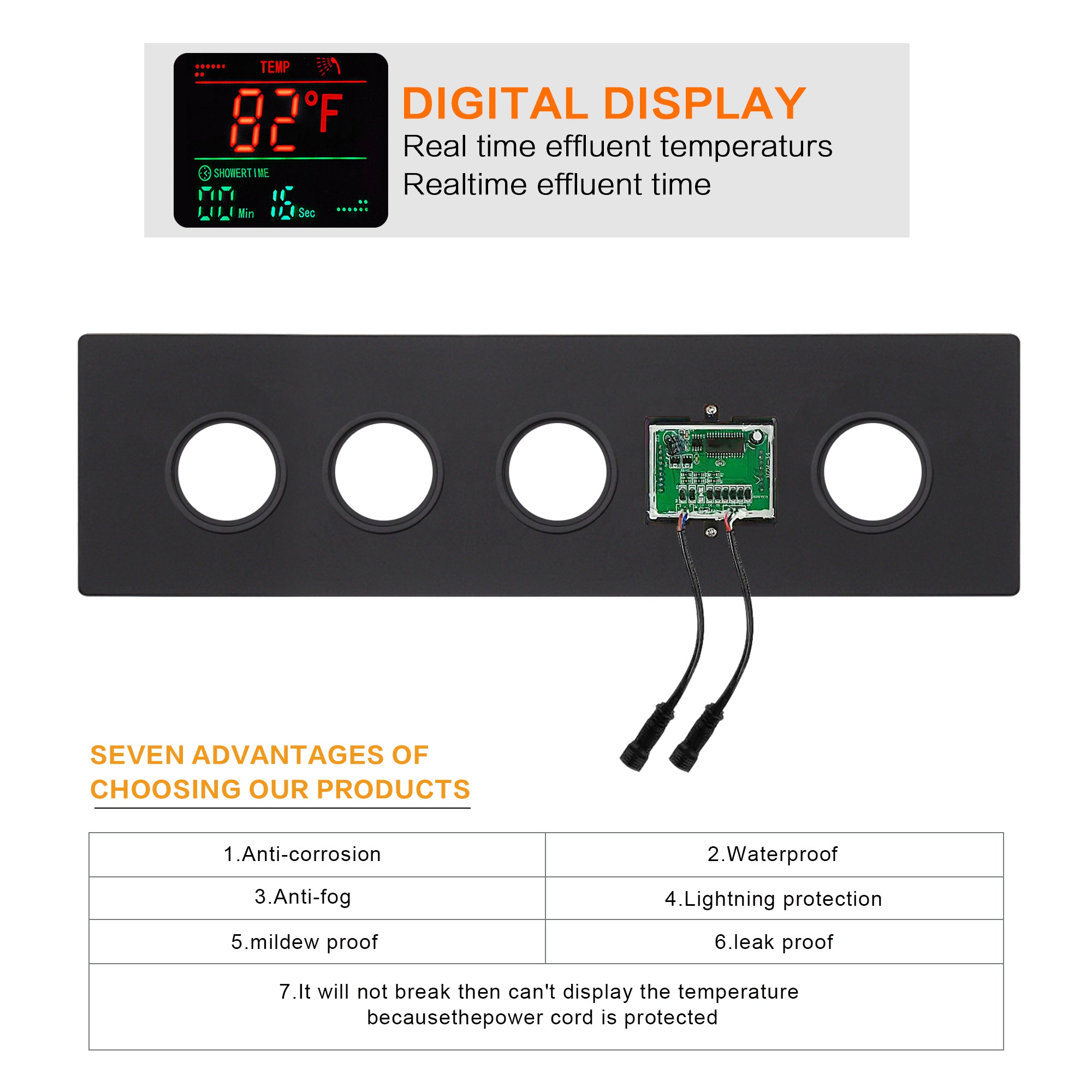 Feature: Digital display work by water flow, Fahrenheit display, no need battery, each function work all together and separately.