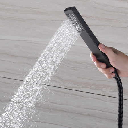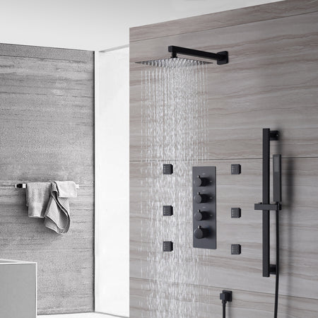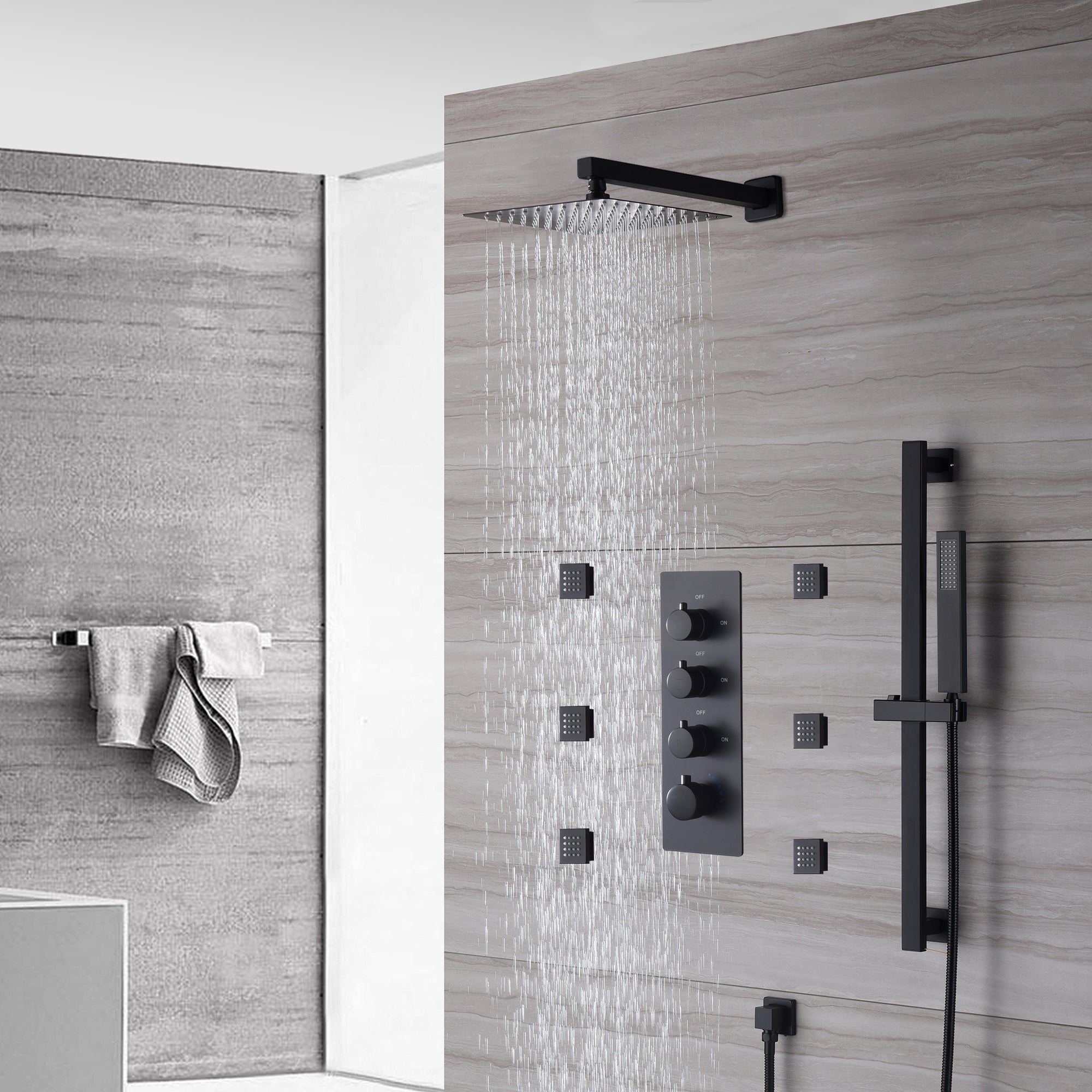 12 inch or 16 inch wall mounted shower head matte black 3 way thermostatic shower faucet with body jets and sliding bar