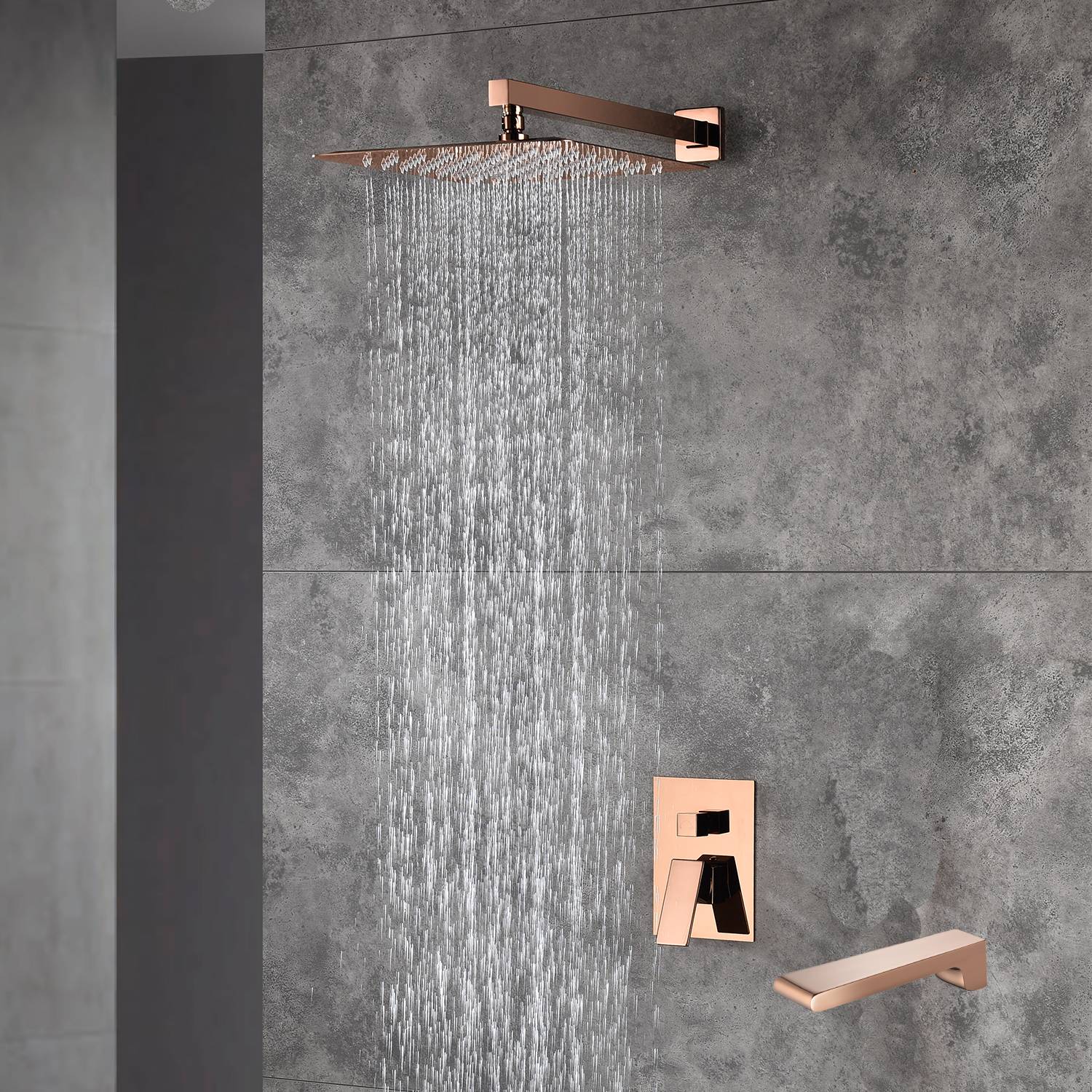 12inch Rose Gold wall mounted Shower System With waterfall tub spout