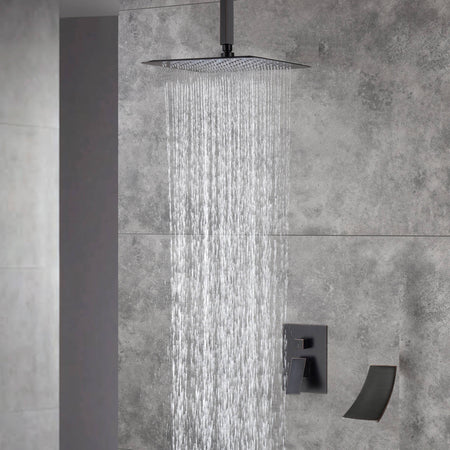 12inch or 16 inch ceiling mounted Rainfall Oil Rubbed Bronze Shower Faucet Set System with waterfall tub spout