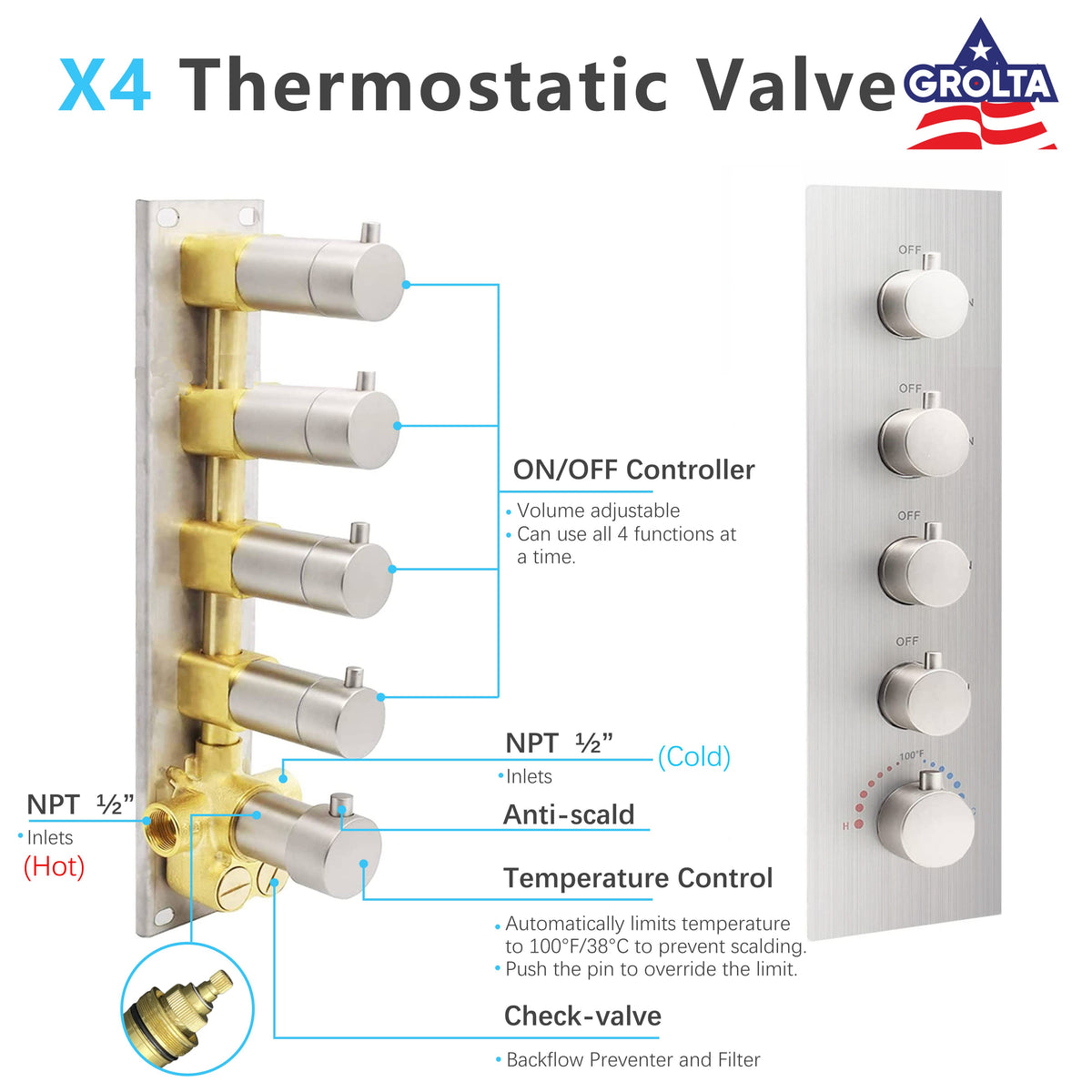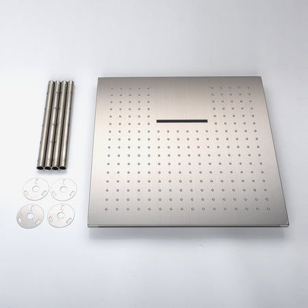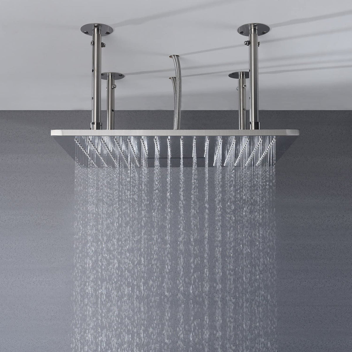 20 Inch Brushed nickel ceiling mount rainfall waterfall shower systems 4 way thermostatic valve with 6 inch regular head
