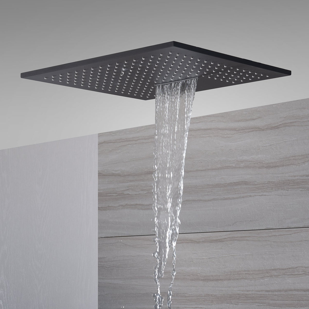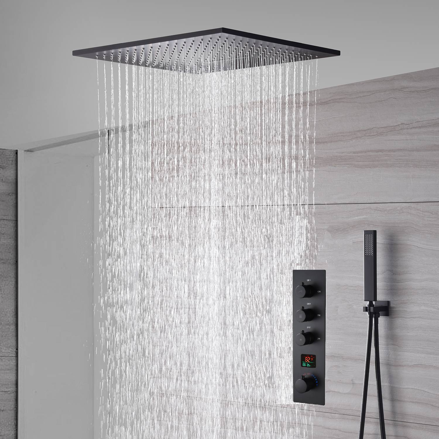 20inch matte black ceiling mount rainfall waterfall shower systems 3 way digital display thermostatic valve with 6 body jets