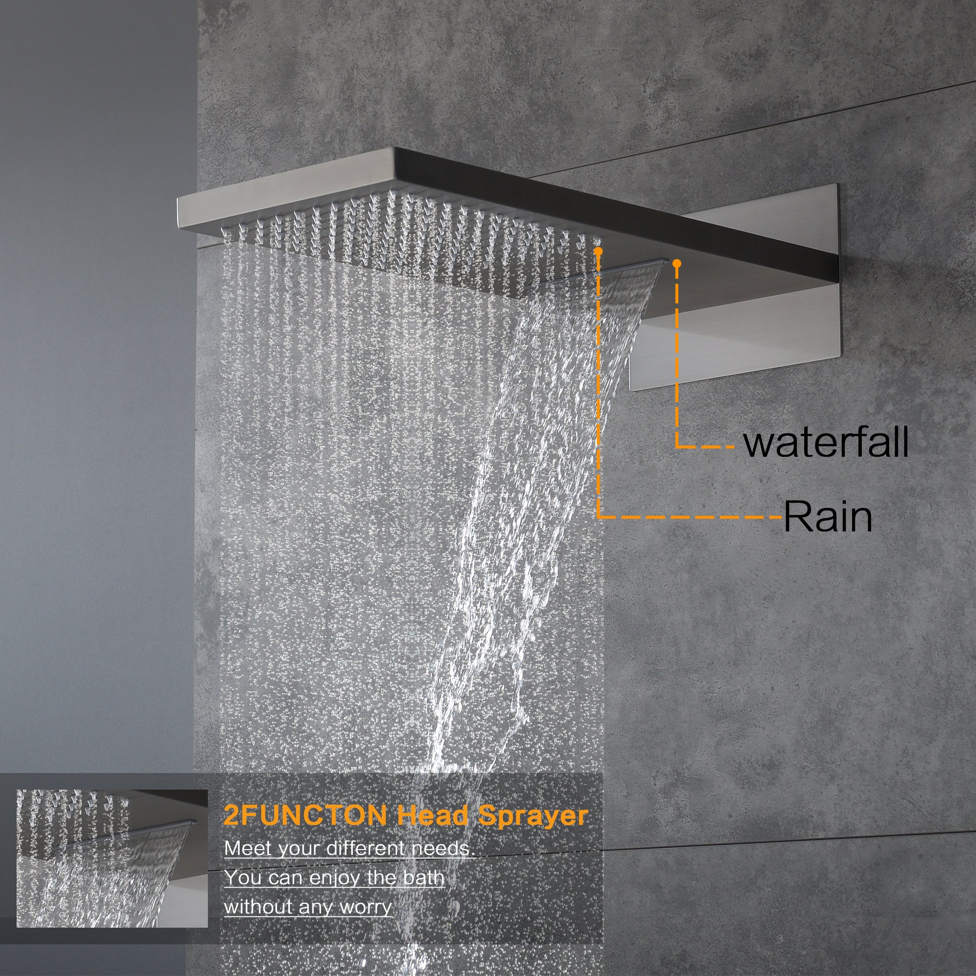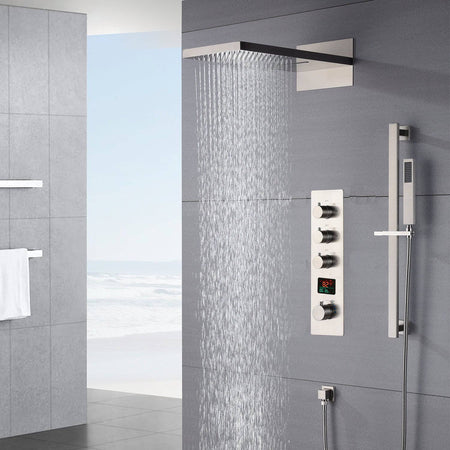 22inch rainfall and waterfall Brushed Nickel 3 Way digital Thermostatic Shower Faucet