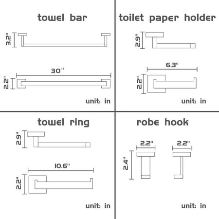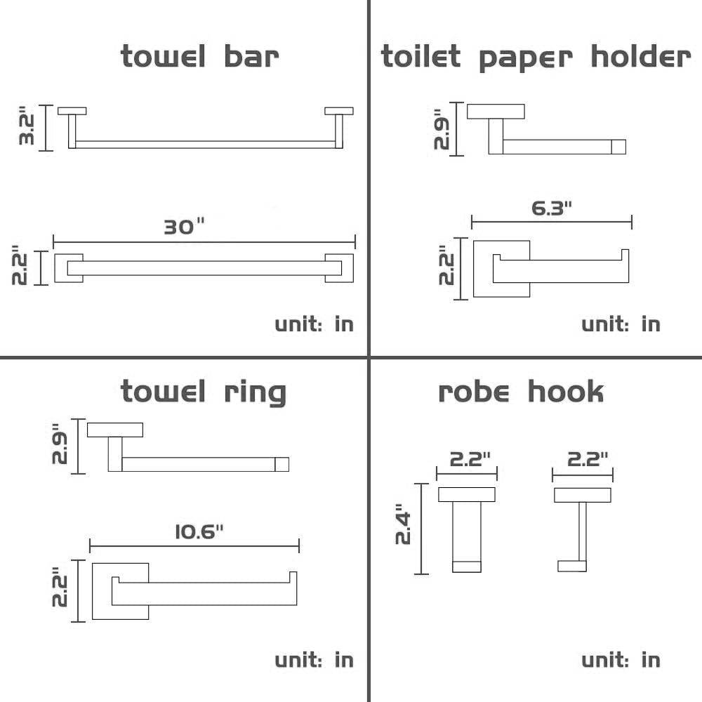 30 inch Square 4-Piece Brass Chrome Bathroom Hardware Set Towel Bar Towel Ring Toilet Paper Holder Robe Hook Tower Holder,Wall Mounted
