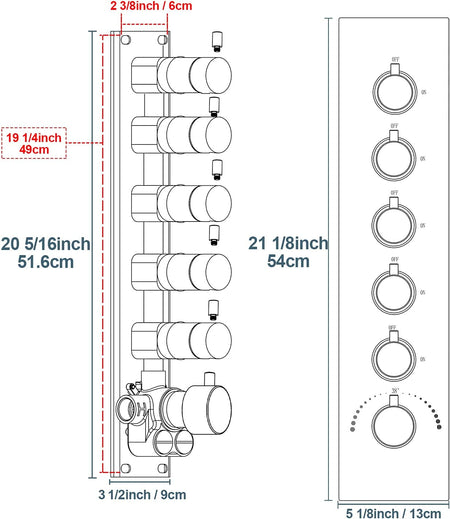 5 way thermostatic chrome or brushed nickle Or brushed gold rough in valve with trim