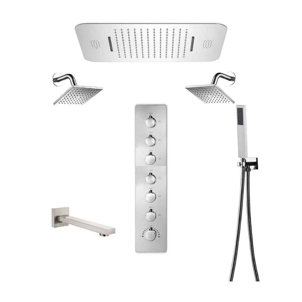 64 LED colors Brushed nickel music led flushed in 23x15inch shower head 6 way thermostatic valve that each function run at the same time and separately