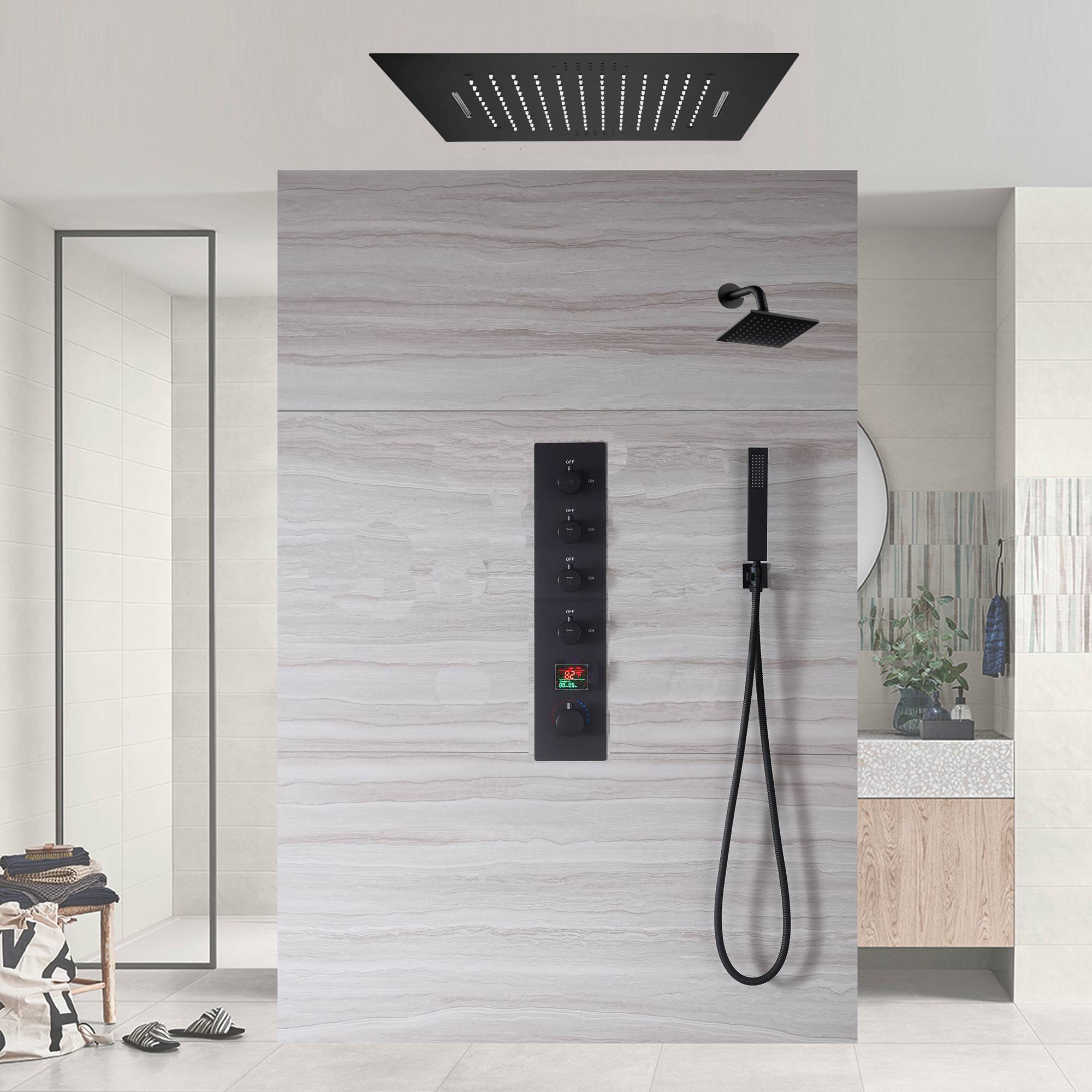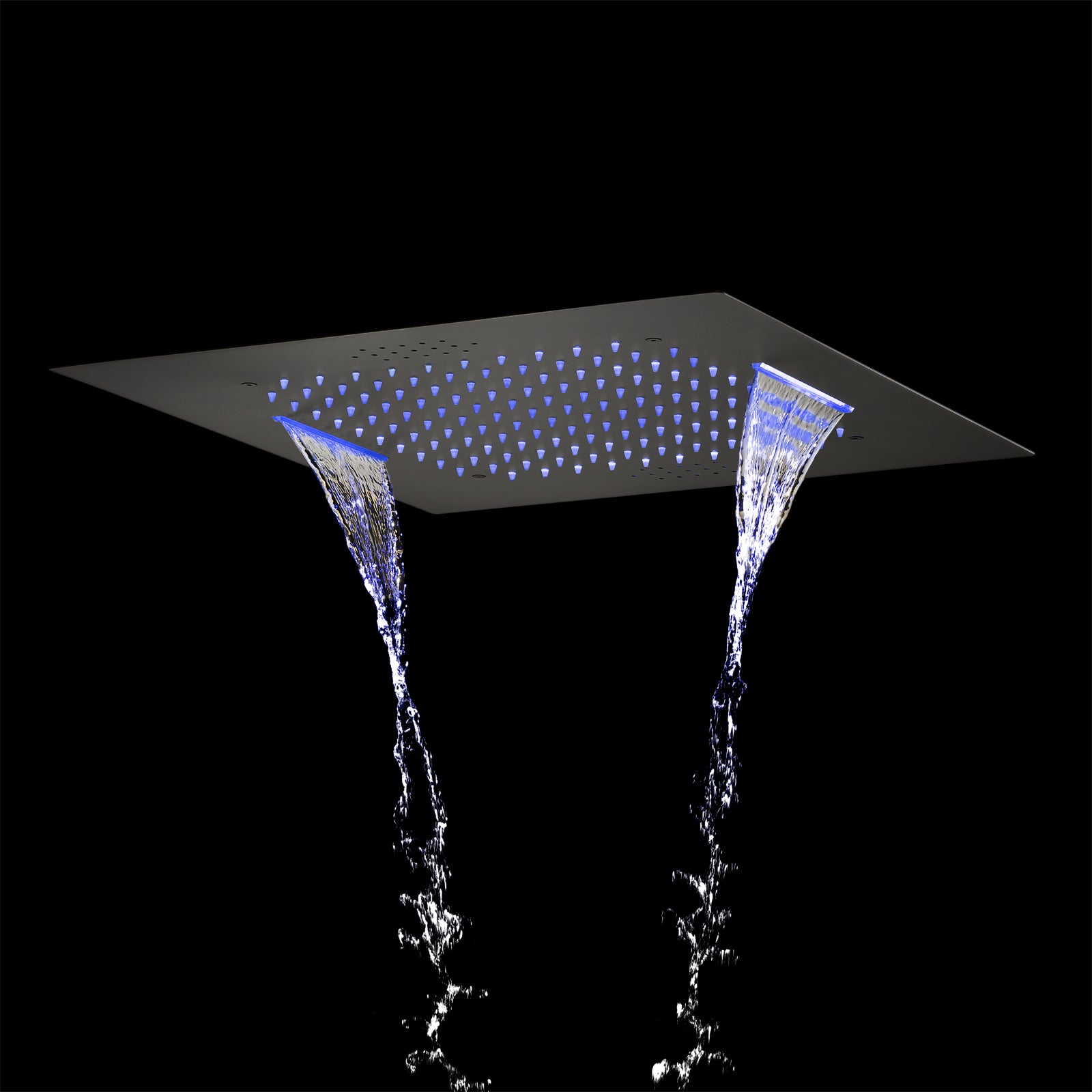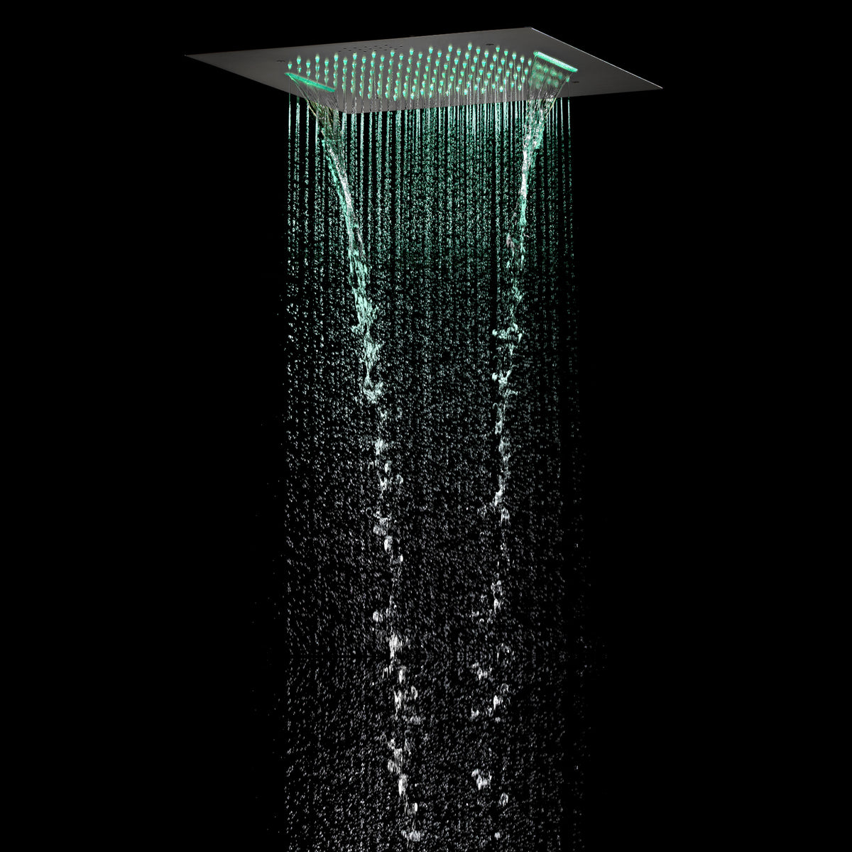 20 inch flushed mounted rainfall waterfall 64 led light bluetooth music 4 way digital display thermostatic shower system with regular head