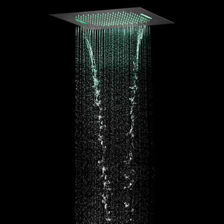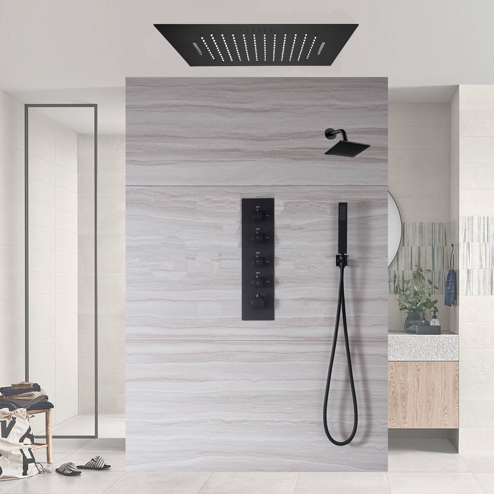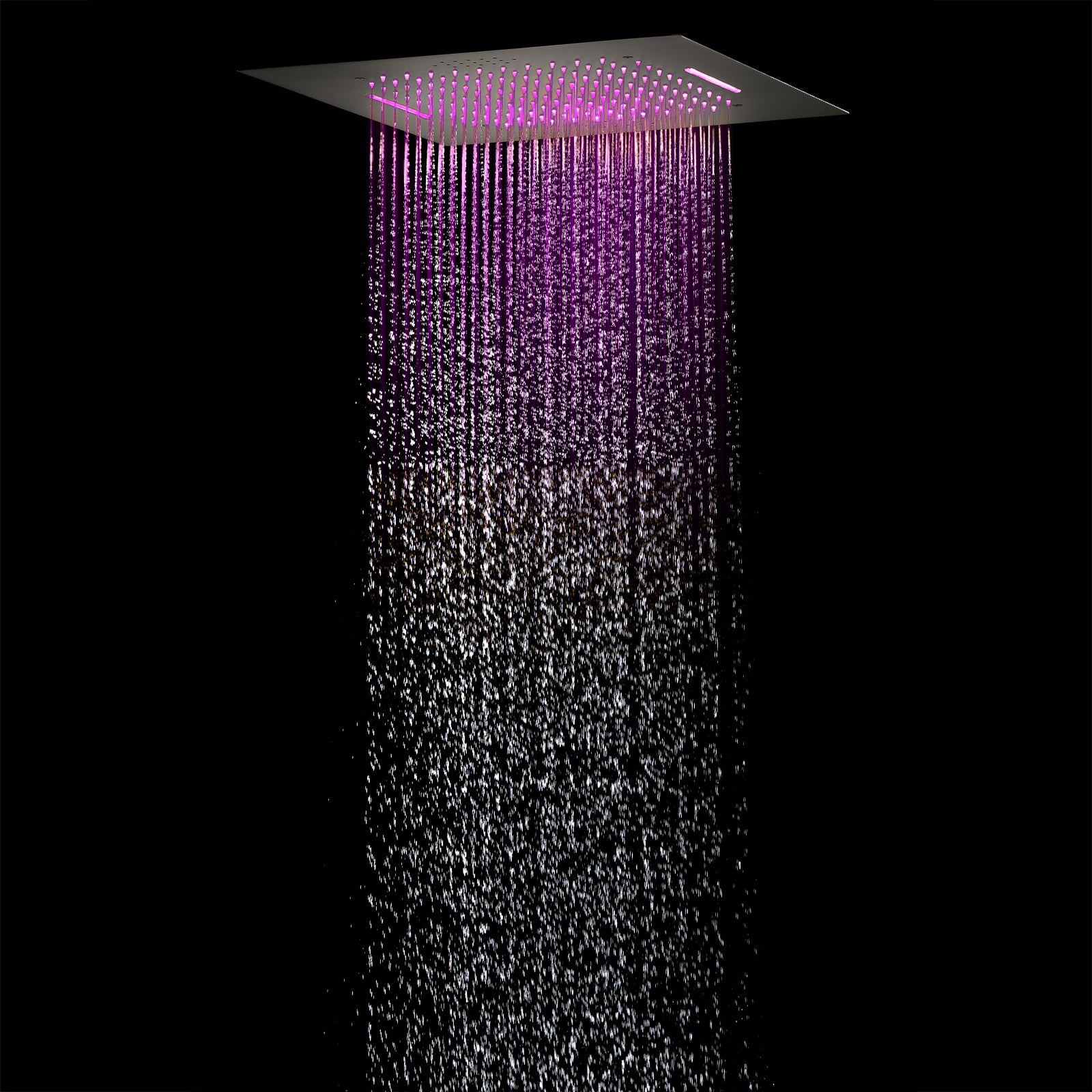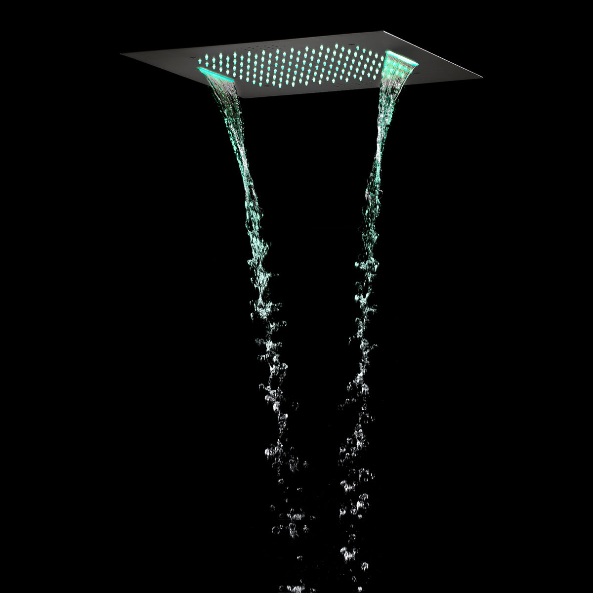 20 inch flushed mounted rainfall waterfall 64 led light bluetooth music 4 way digital display thermostatic shower system with regular head
