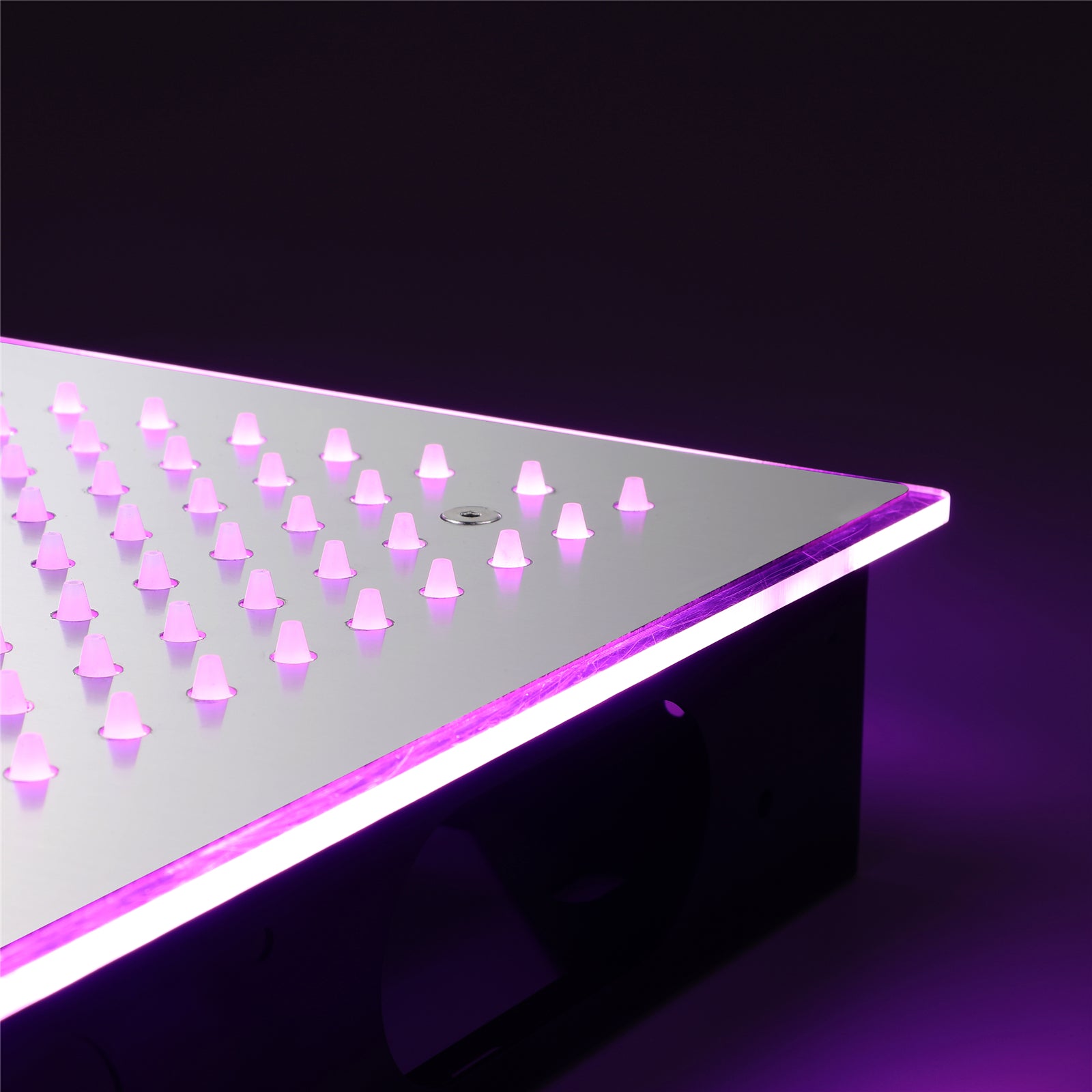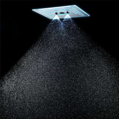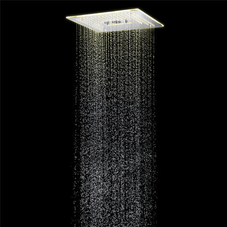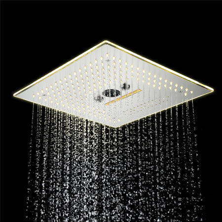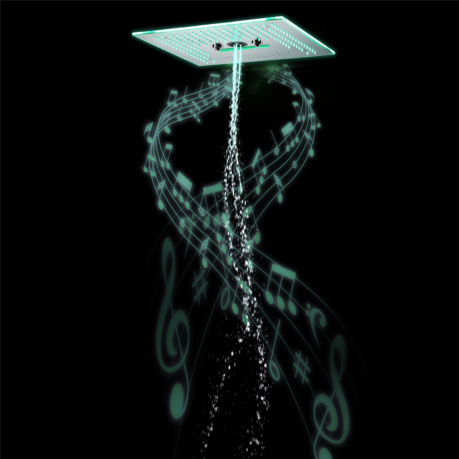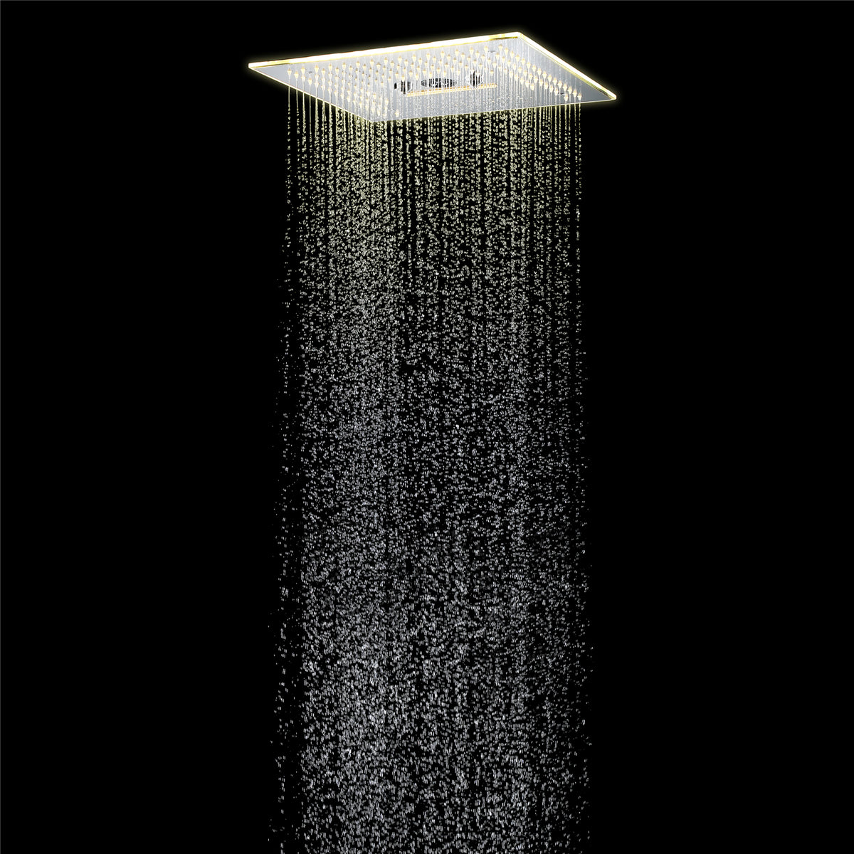 Brushed nickel 16'' x 16'' music 64 LED light rainfall waterfall mist 360 Degrees rotating hydro jet stainless shower head flushed mounted