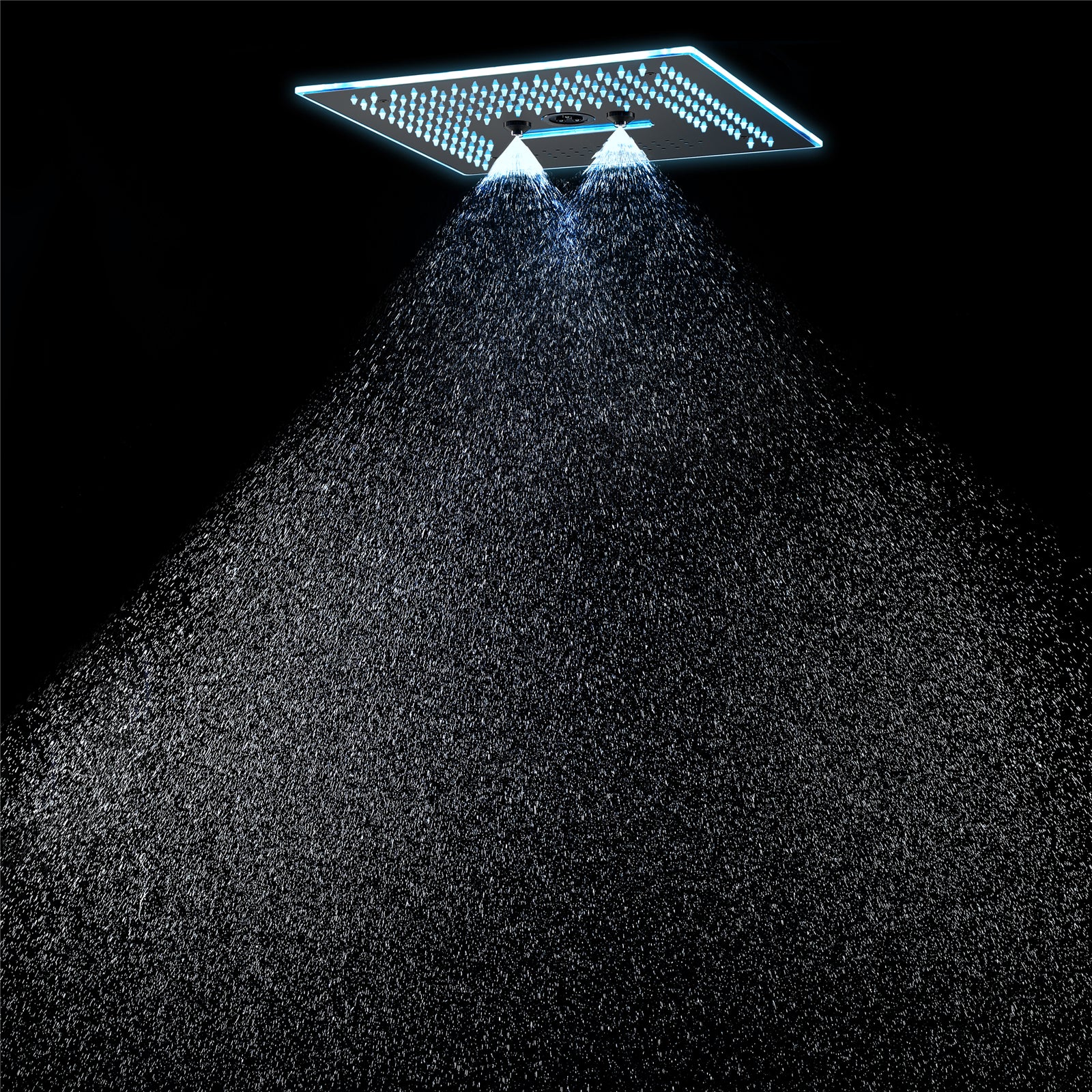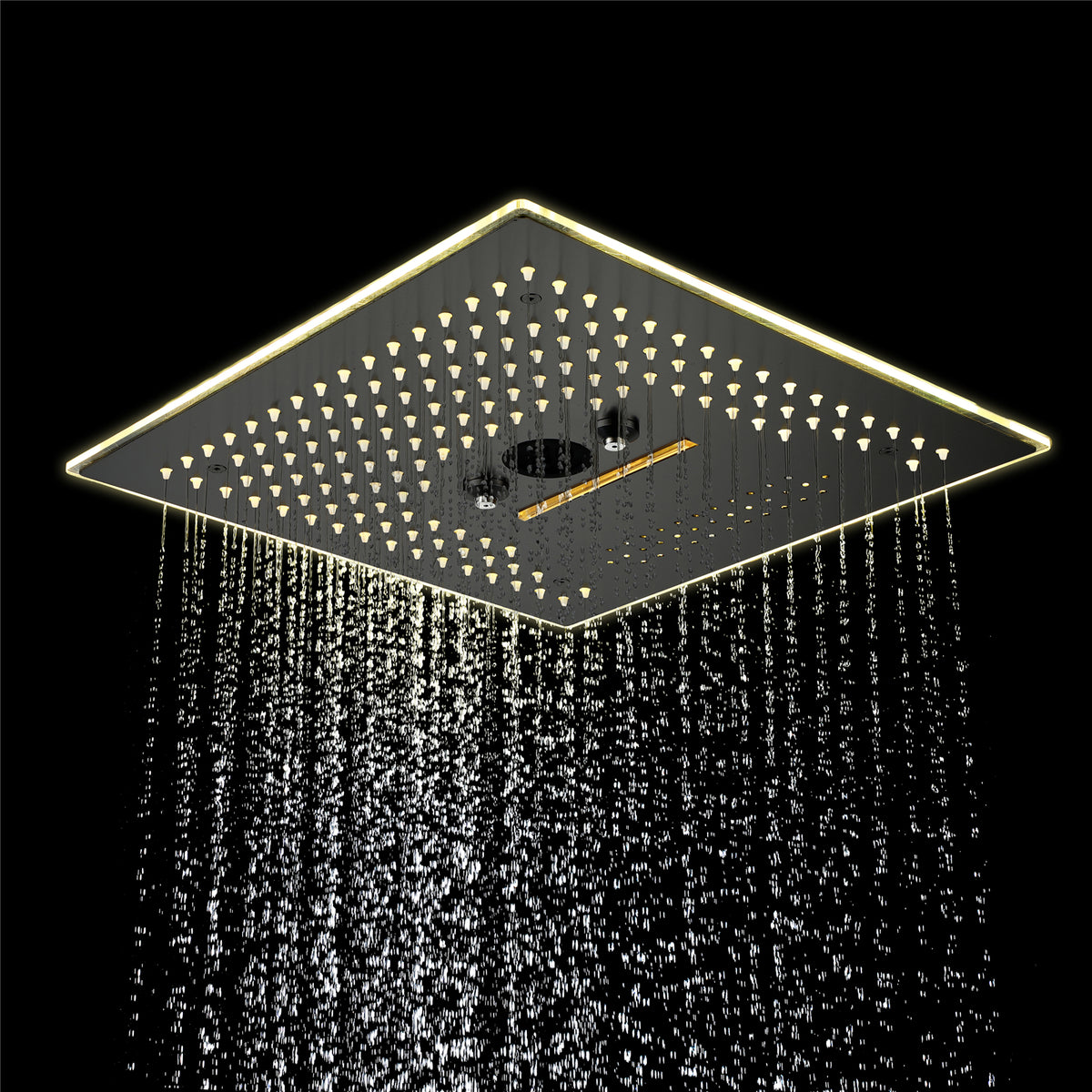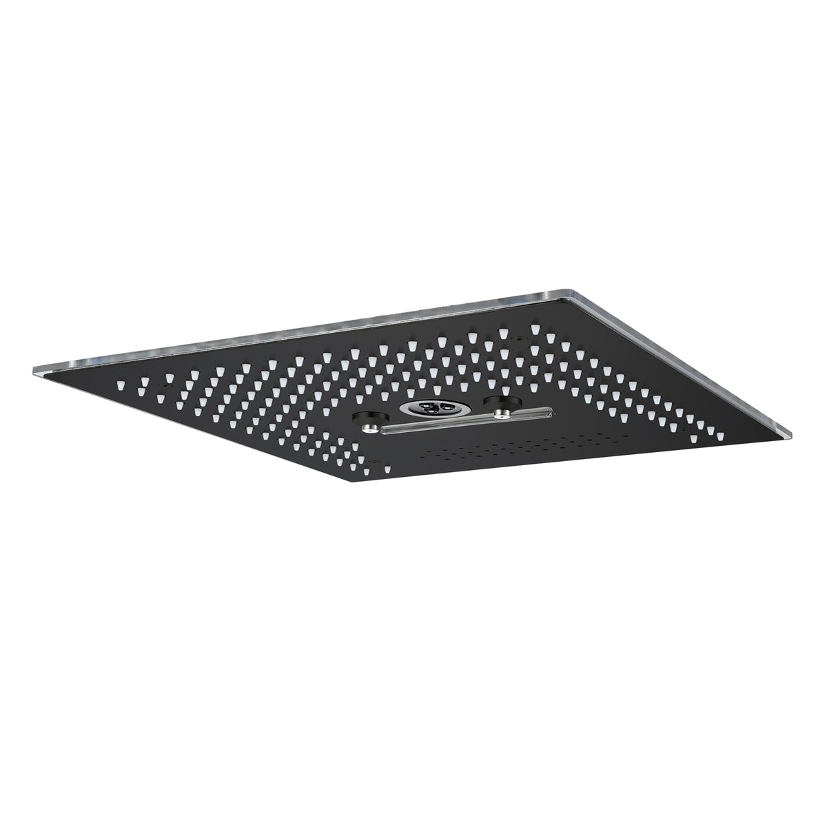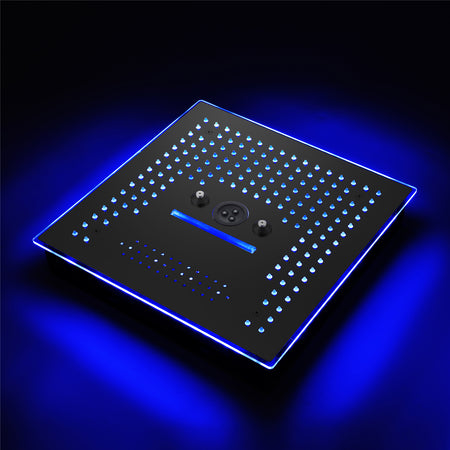 Matte Black 16'' x 16'' music 64 LED light rainfall waterfall mist 360 Degrees rotating hydro jet stainless shower head flushed mounted