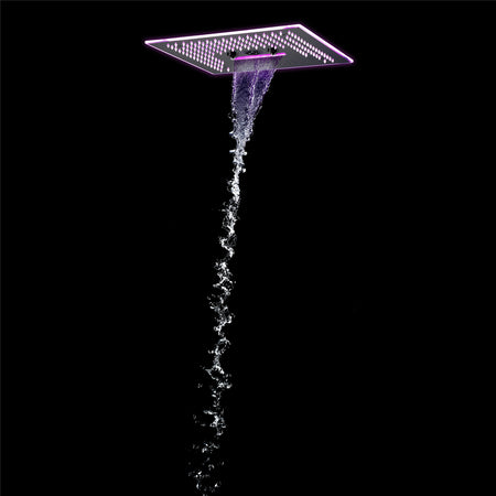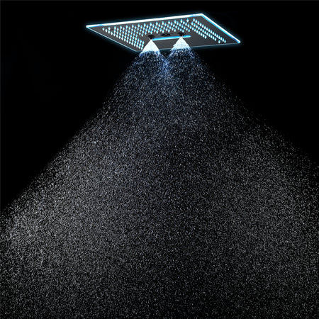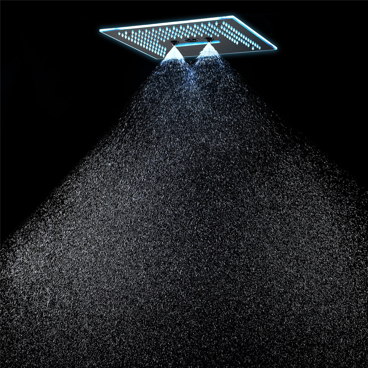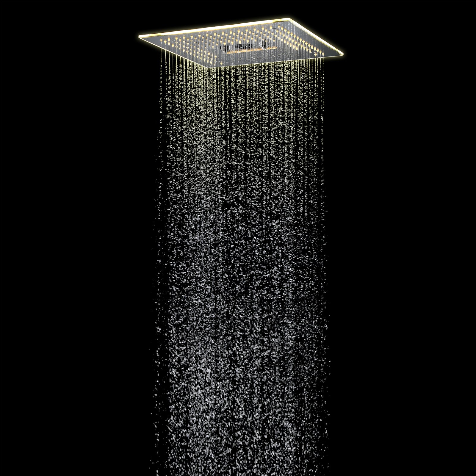 Matte Black 16'' x 16'' music 64 LED light rainfall waterfall mist 360 Degrees rotating hydro jet stainless shower head flushed mounted