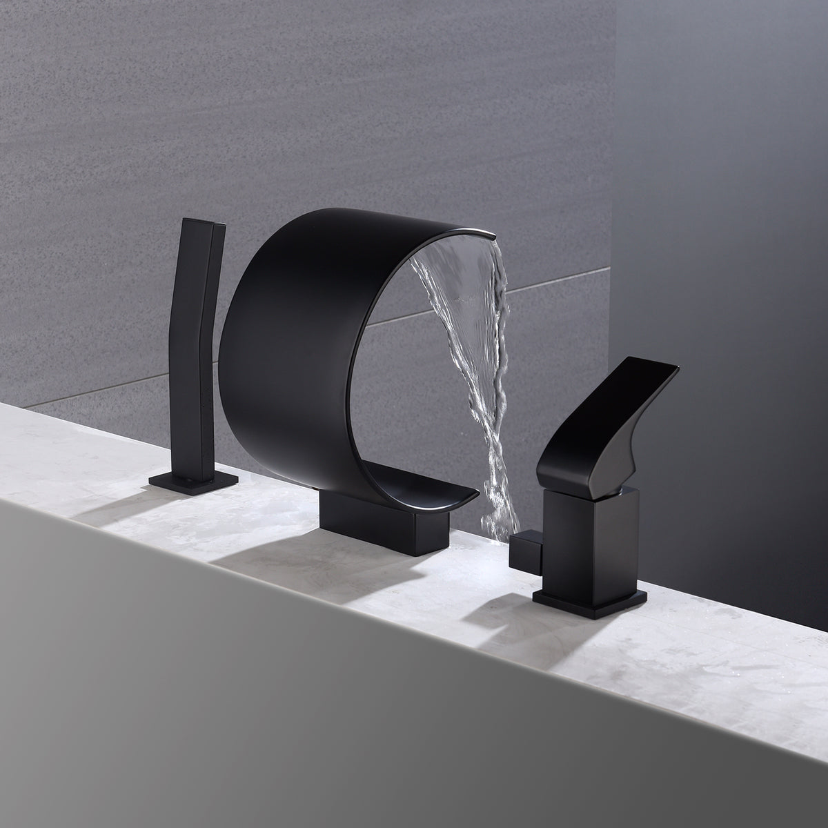 Matte black Bathtub Faucet Waterfall Mixer Faucet with Hand Shower Deck Mount