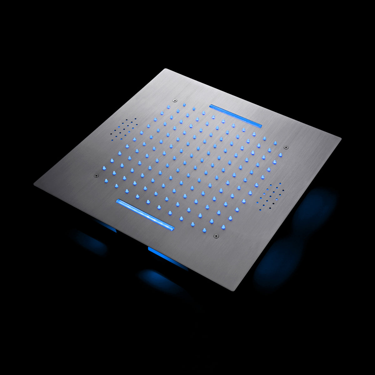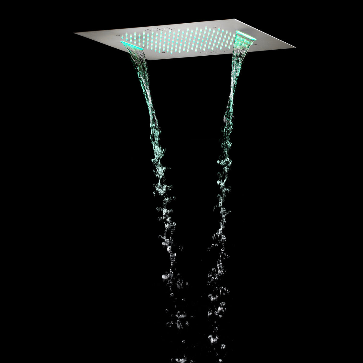 Brushed nickel 20 inch flushed mount rainfall waterfall 64 LED light bluetooth music shower head