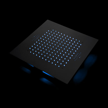 Matte black 20 inch flushed mount rainfall 64 LED light bluetooth music shower head