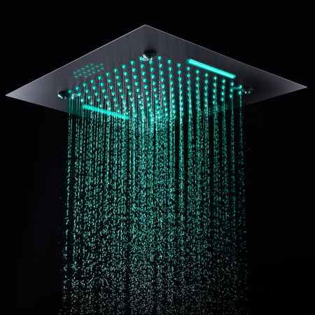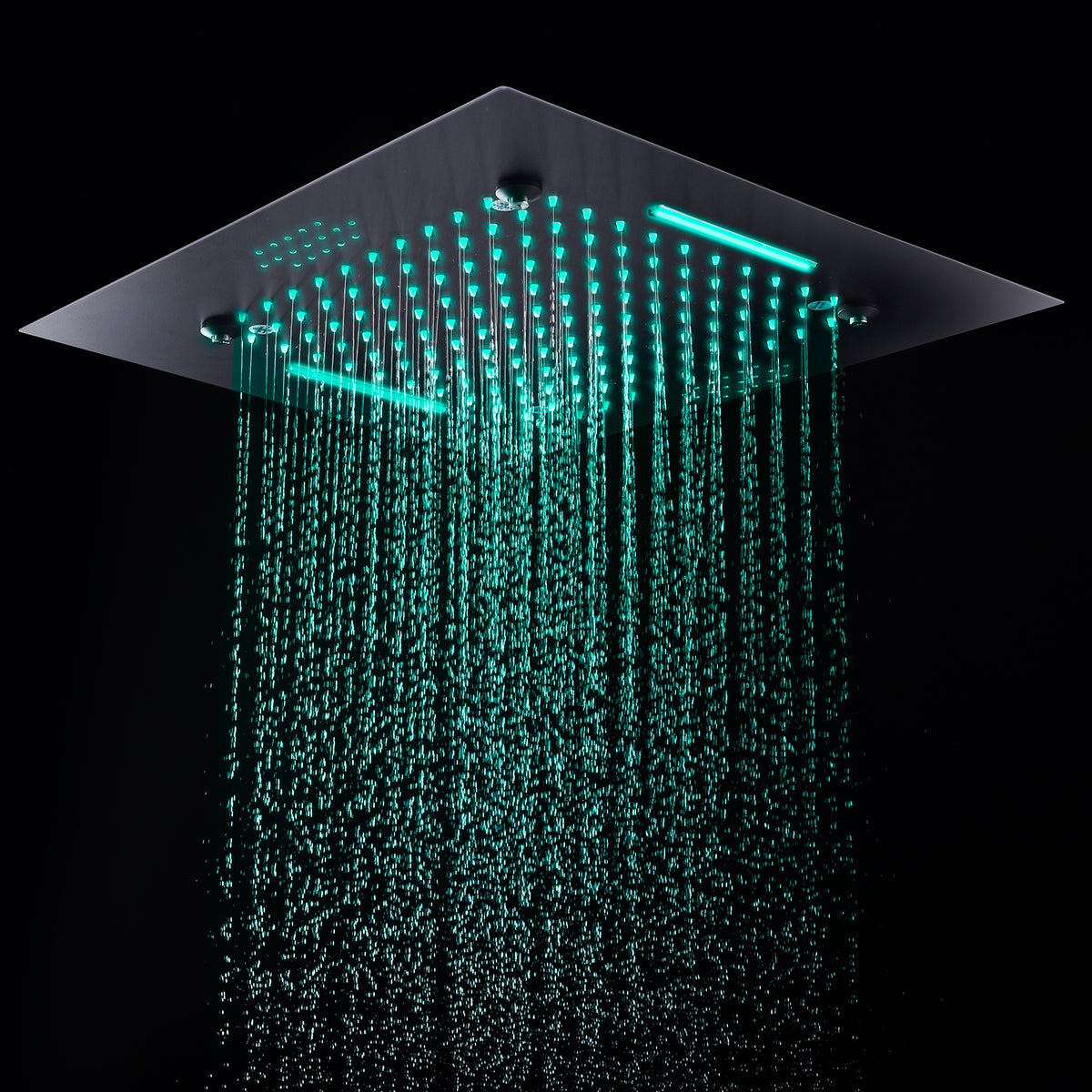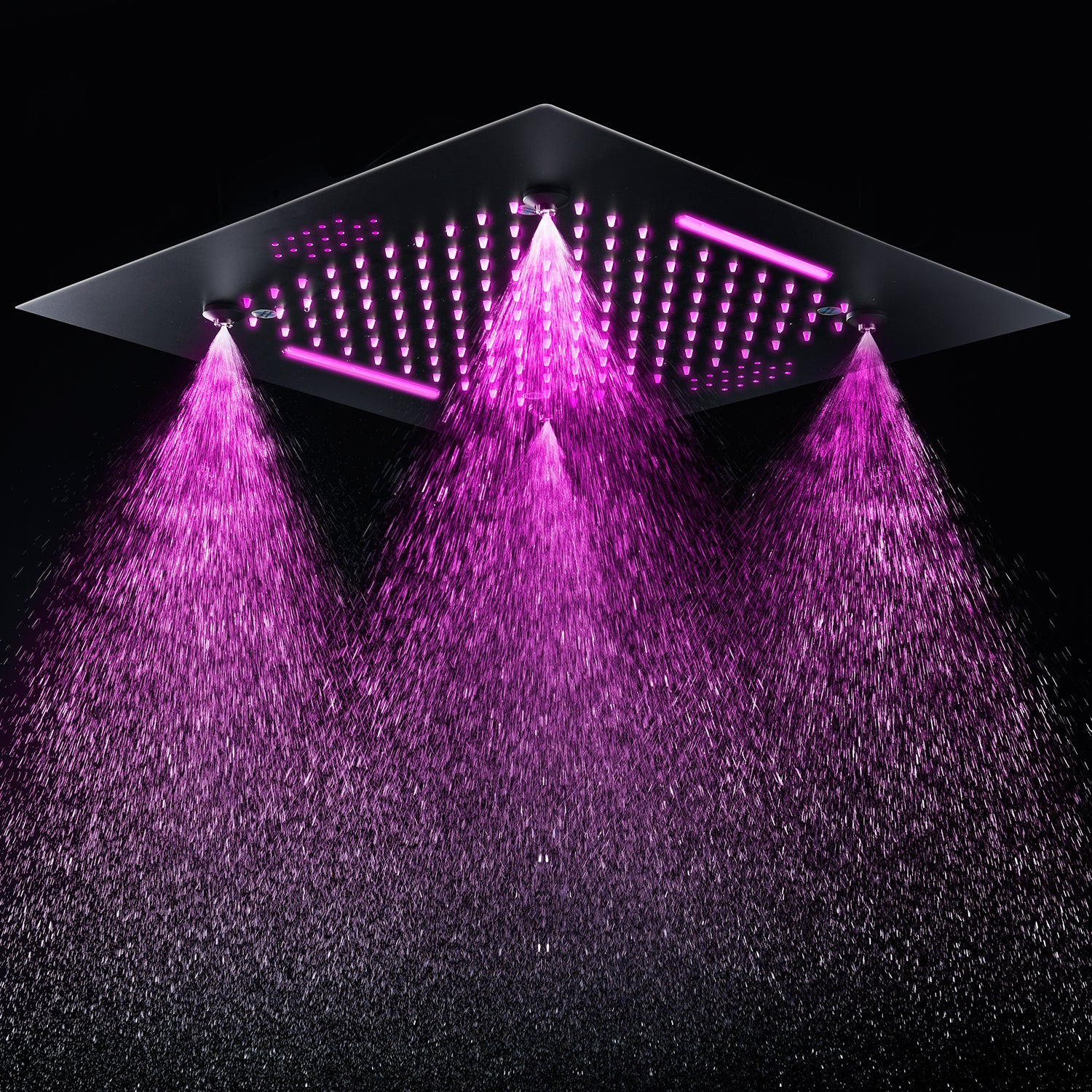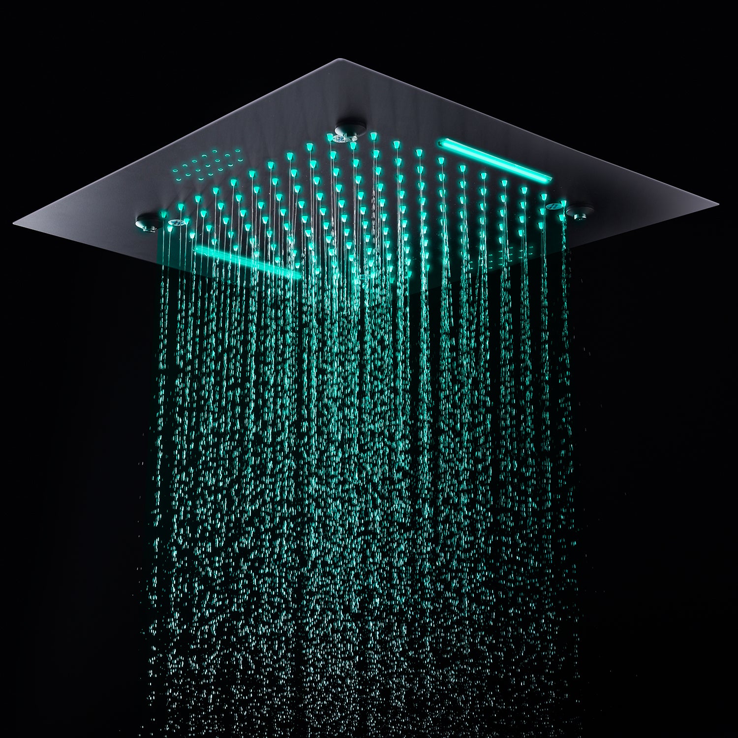 Matte black 20 inch flushed mount mist rainfall waterfall 64 LED light bluetooth music shower head