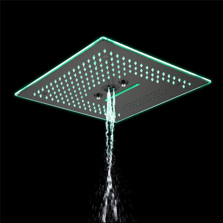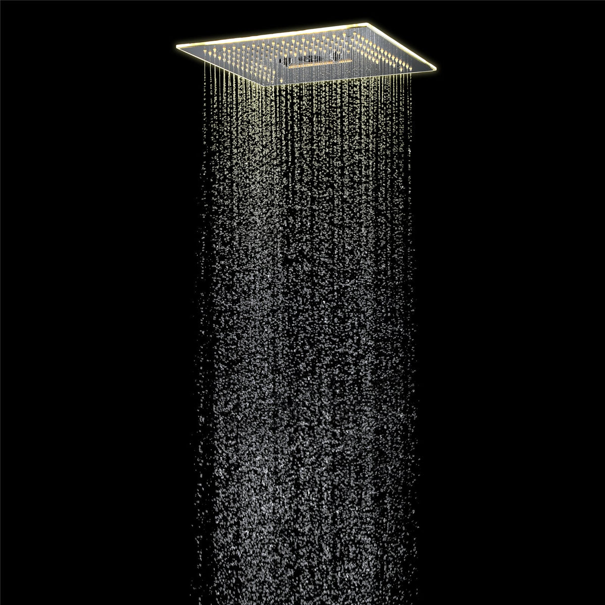 16 x 16 inch rainfall 64 LED light bluetooth speaker shower head flushed on ceiling