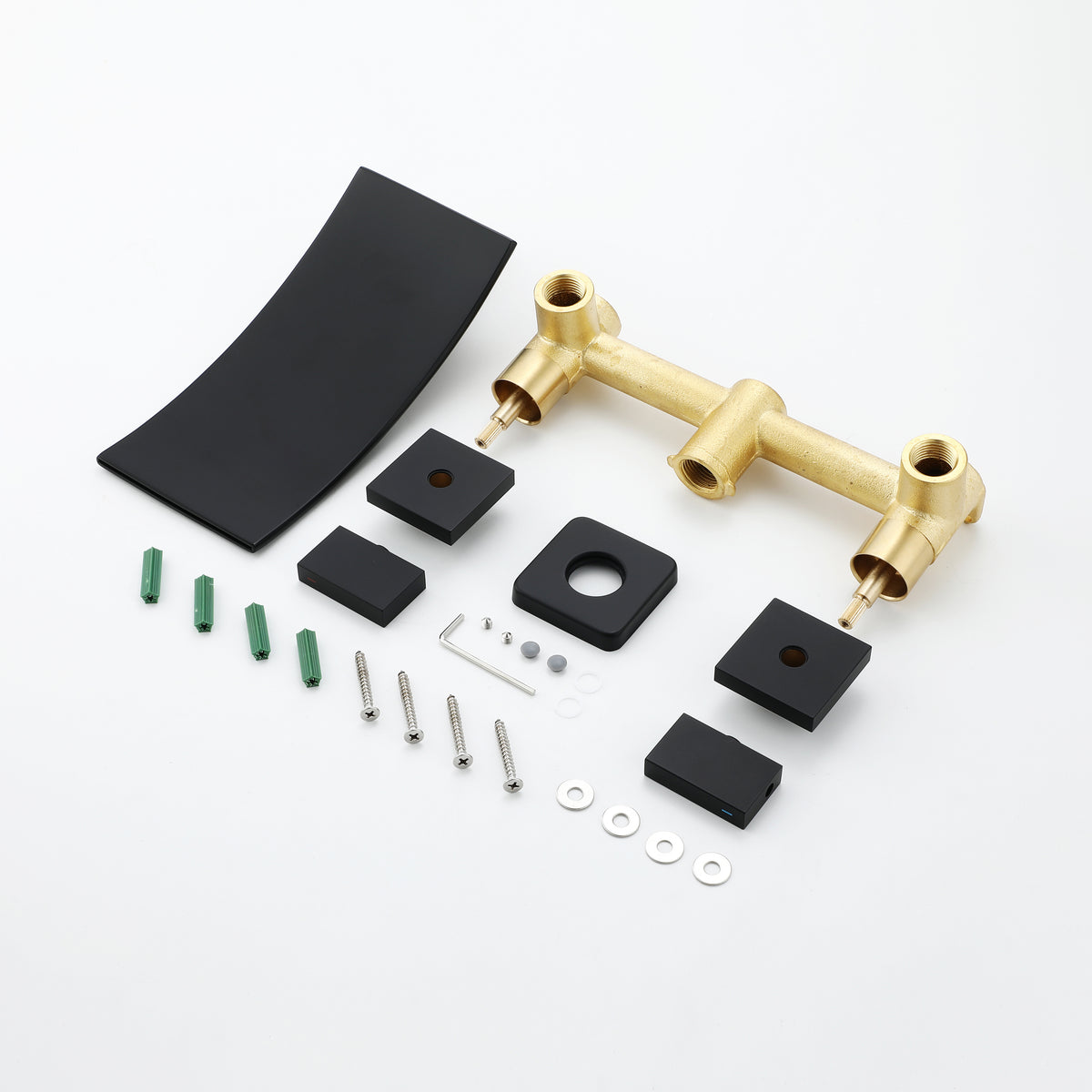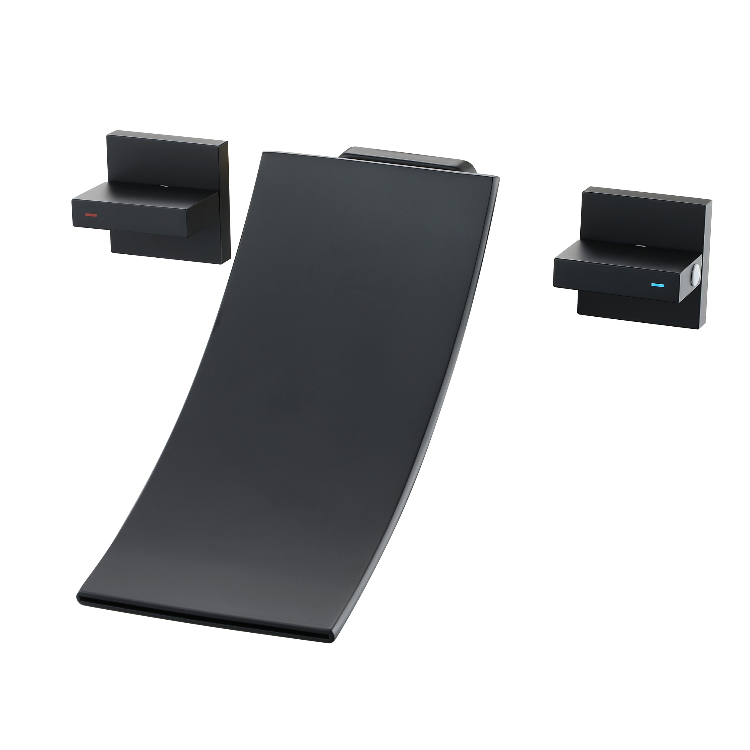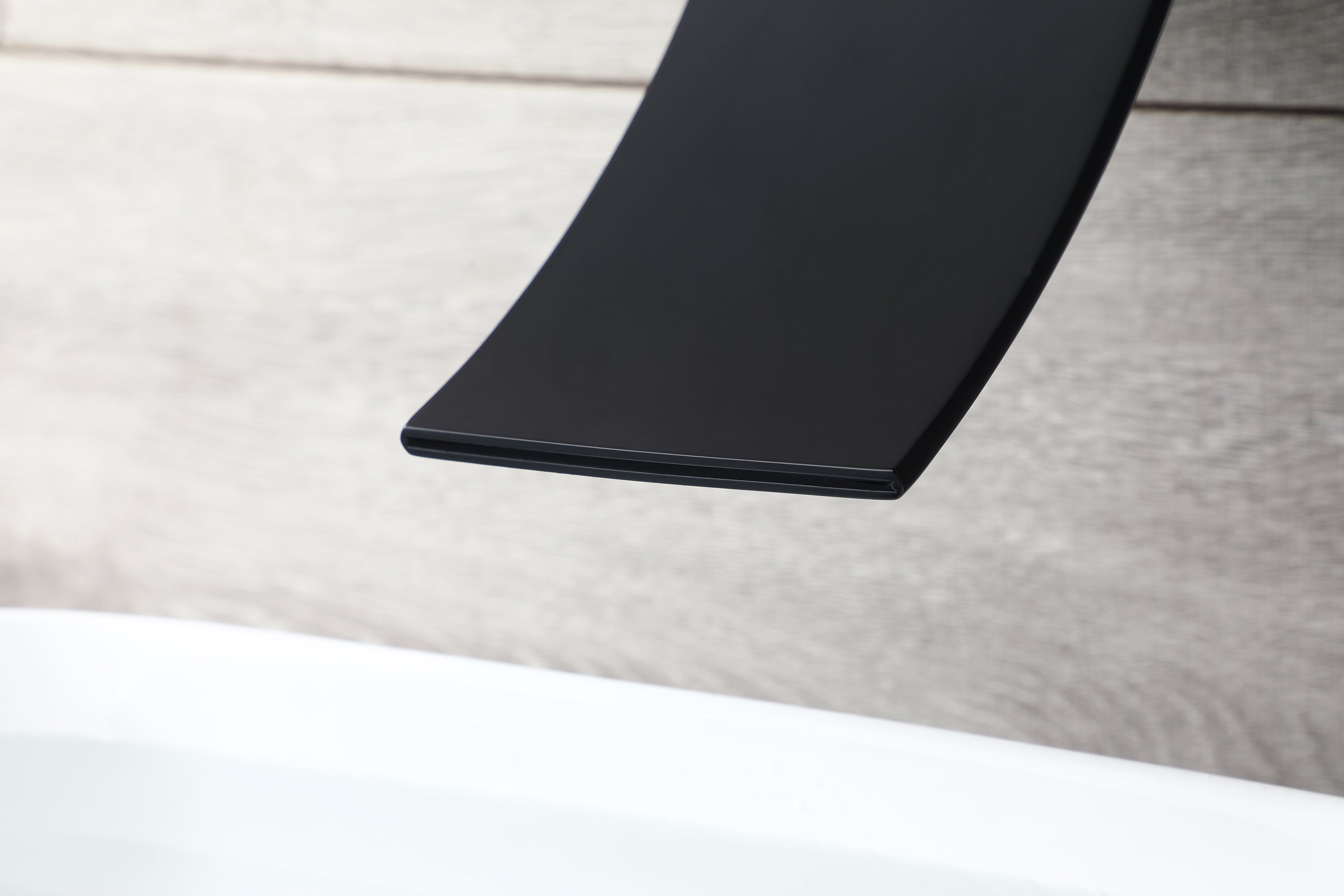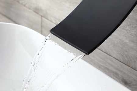 matte black waterfall wall mount bathroom sink faucet with overflow brass pop up drain