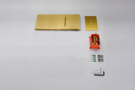 Polished Gold 22 Inch Rainfall Waterfall Shower Head 3 Way Thermostatic Shower Faucet Set Each Function Work All Together and Separately