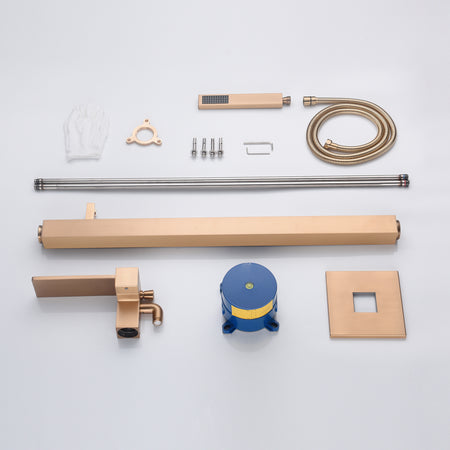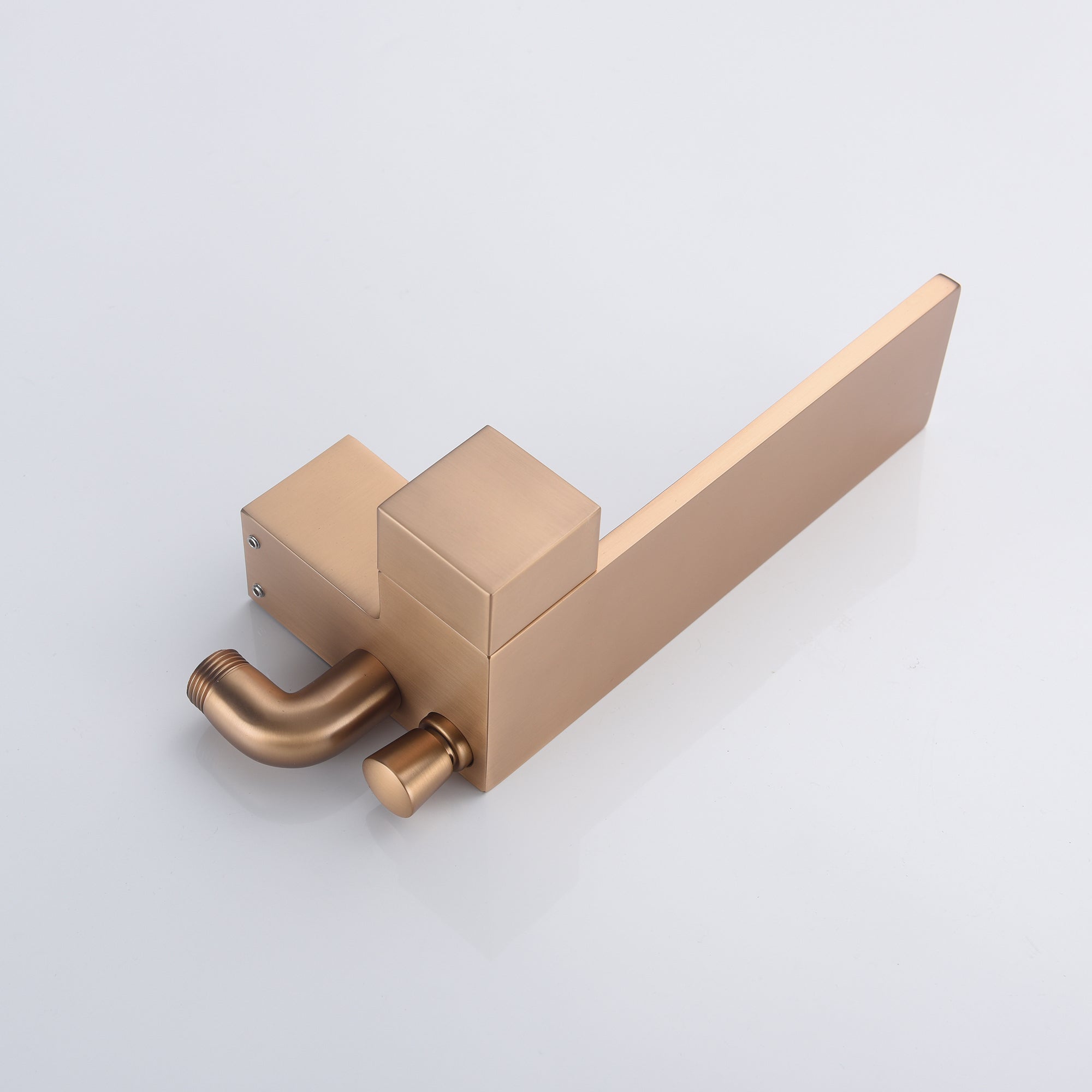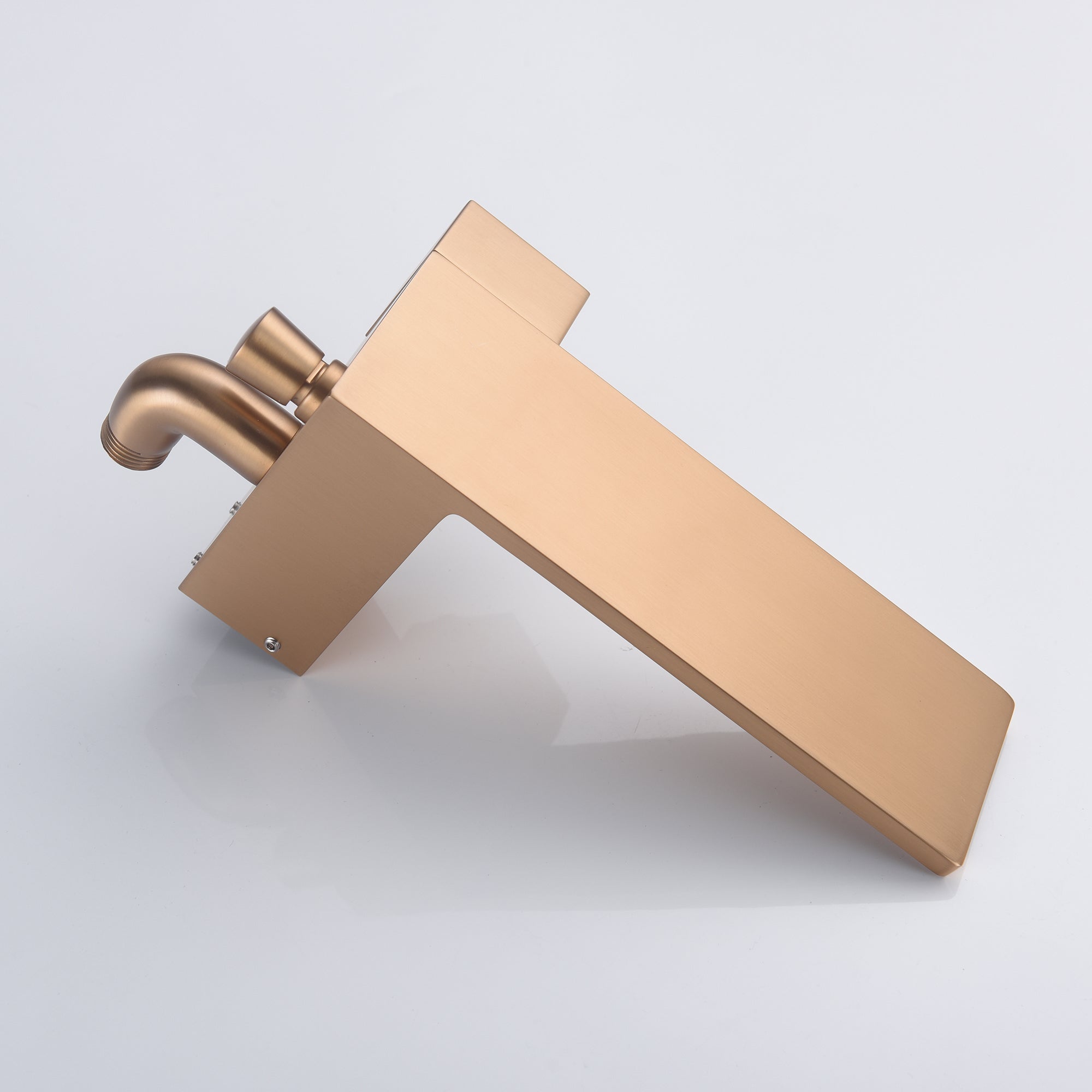 Rose Gold Finish Single Handle Floor Mount Waterfall Freestanding Tub Filler Faucet with Hand Shower