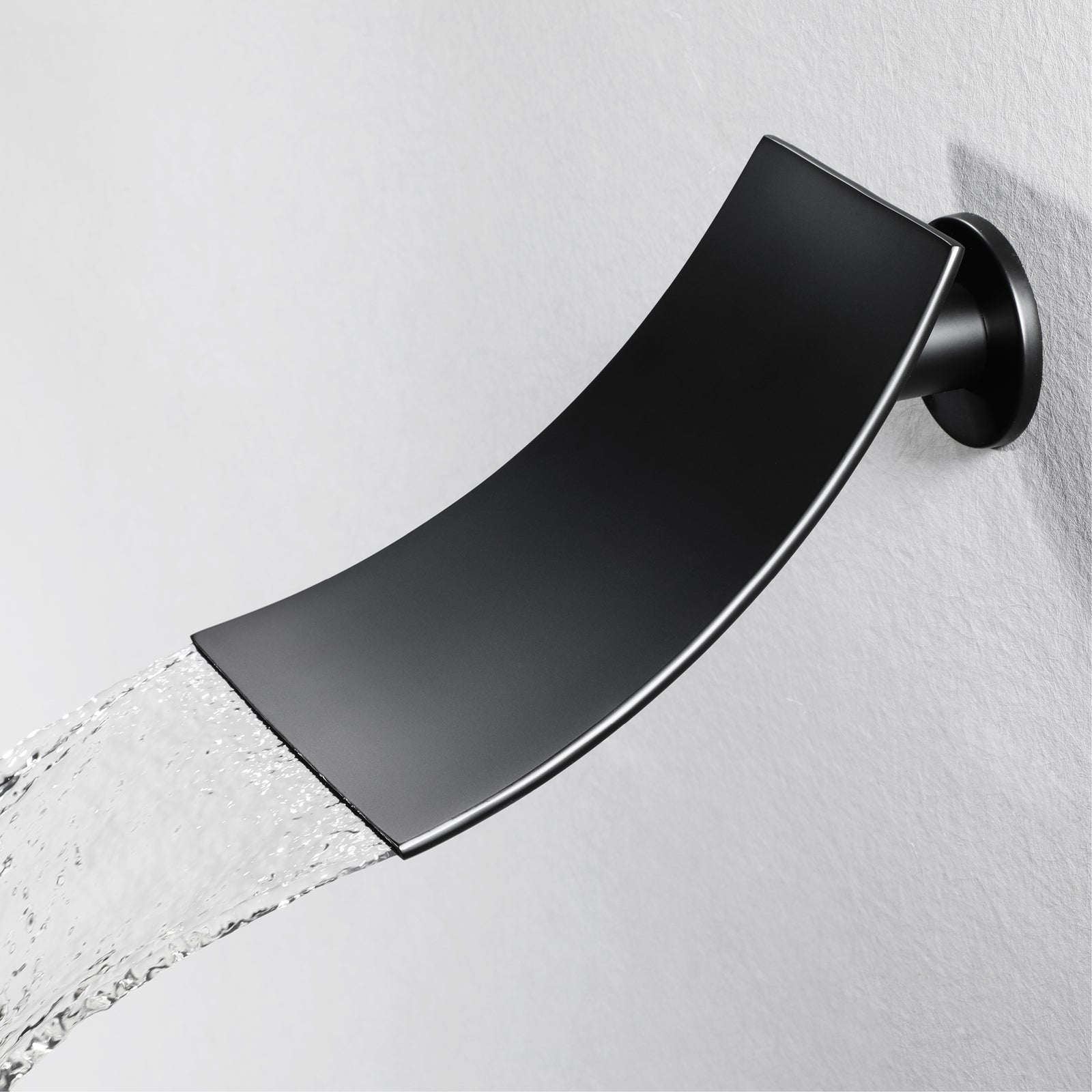 Waterfall Wall-mount Pressure balance Bath Tub Faucet with Handheld Shower Matte black