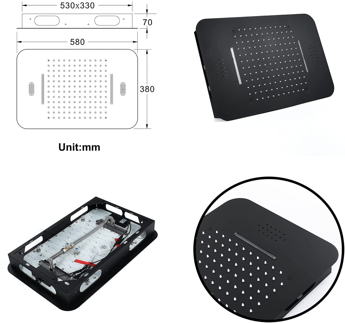 - 23x15inch rainfall waterfall bluetooth music 64 led lights shower head, Touch panel control led light, 110V-260V