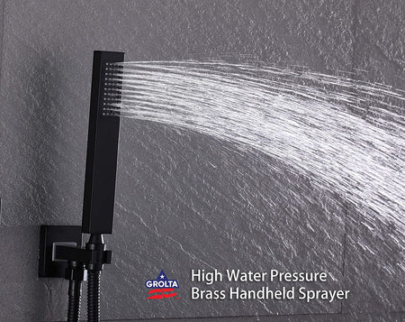- Bluetooth Music Shower System features a top enjoyment of showering time with music, 64 color LED lights, water massage, rain shower, waterfall shower and handheld spray. Each function work independently, so you can either let all functions work at the same time or only turn one or some of them.