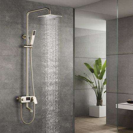 Brushed gold 8 inch rain head 3 function digital display exposed handle shower set with tub spout and handle shower