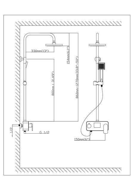 Shower head dimensions; 8’’ x 8’’