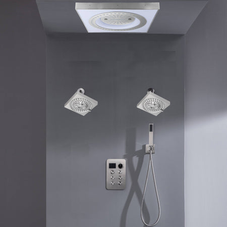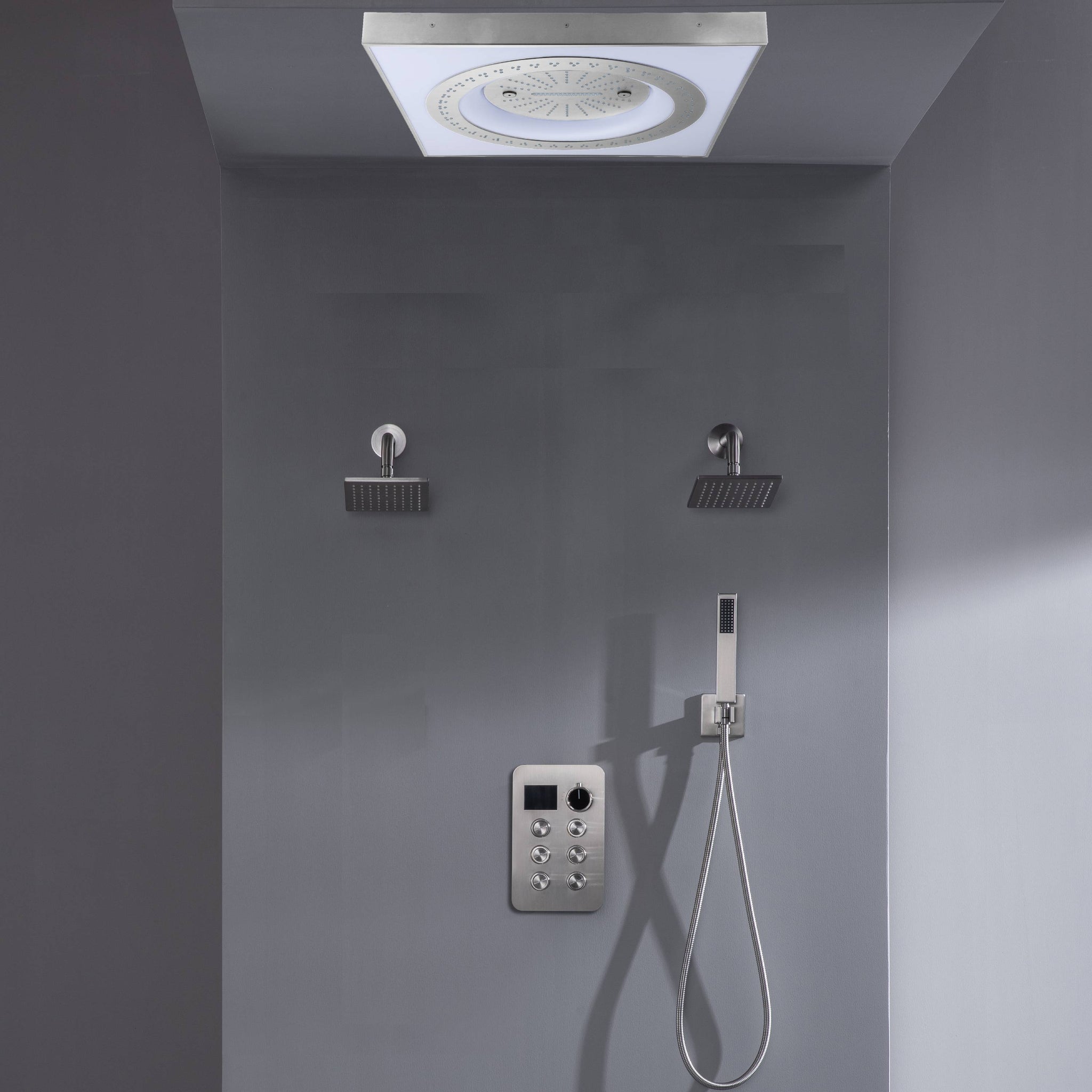 Brushed Gold or Brushed Nickel or Matte Black Flush mount 24 inch Shower Head 6 way Digital Display Shower Faucet with Dual 6'' regular head
