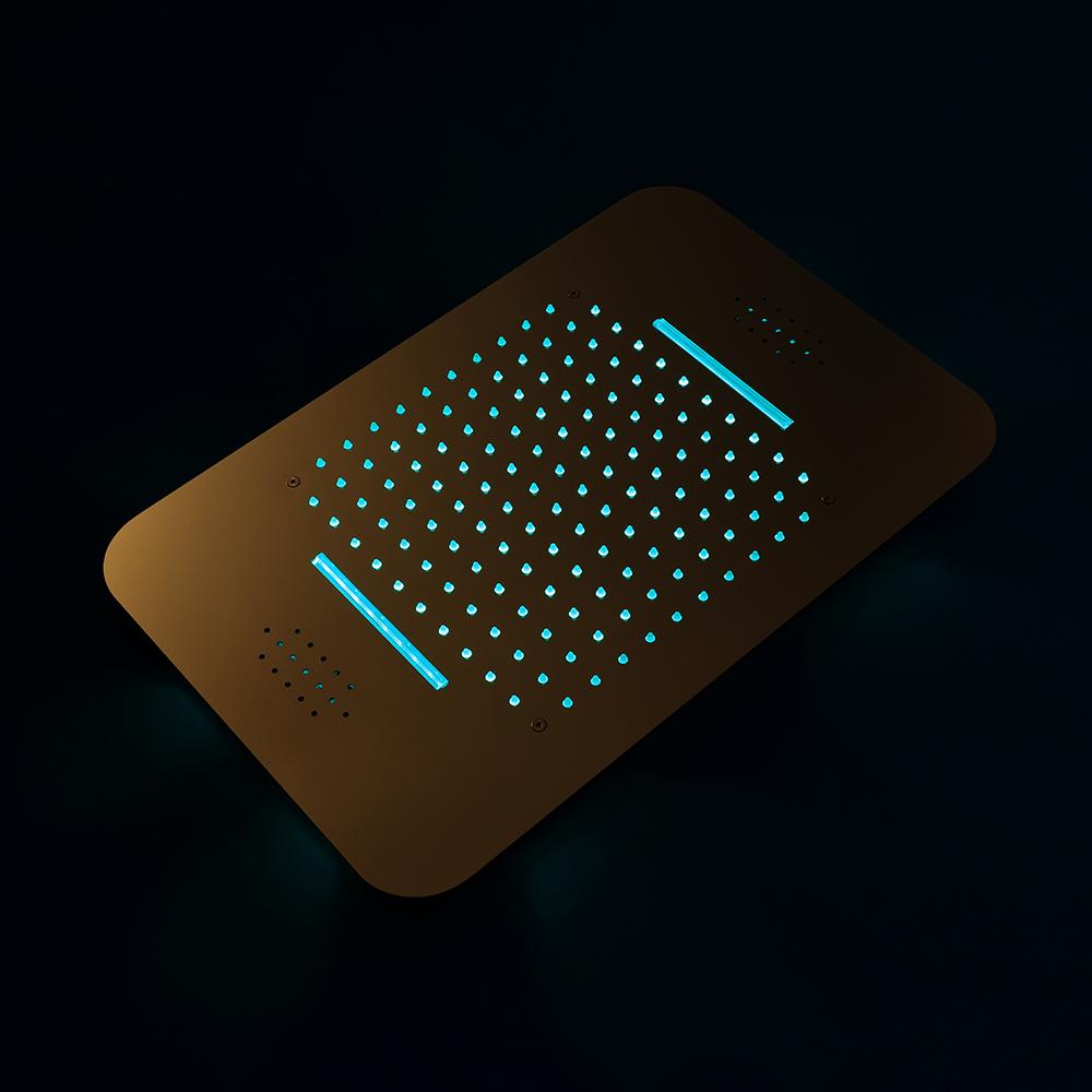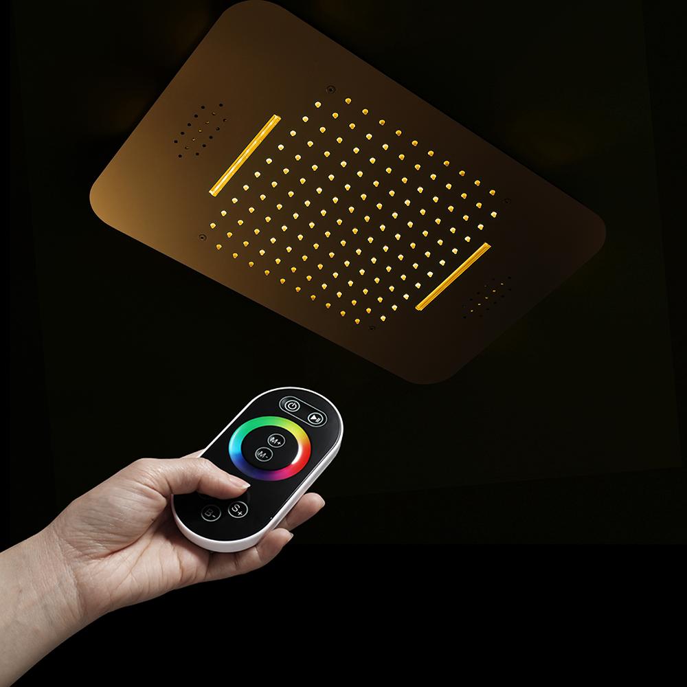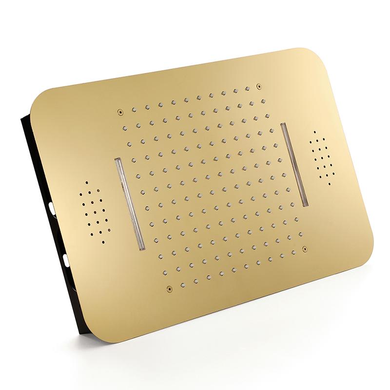 Polished Gold Music LED Flushed in 23X 15inch shower head 4 way thermostatic valve that each function run at the same time and separately