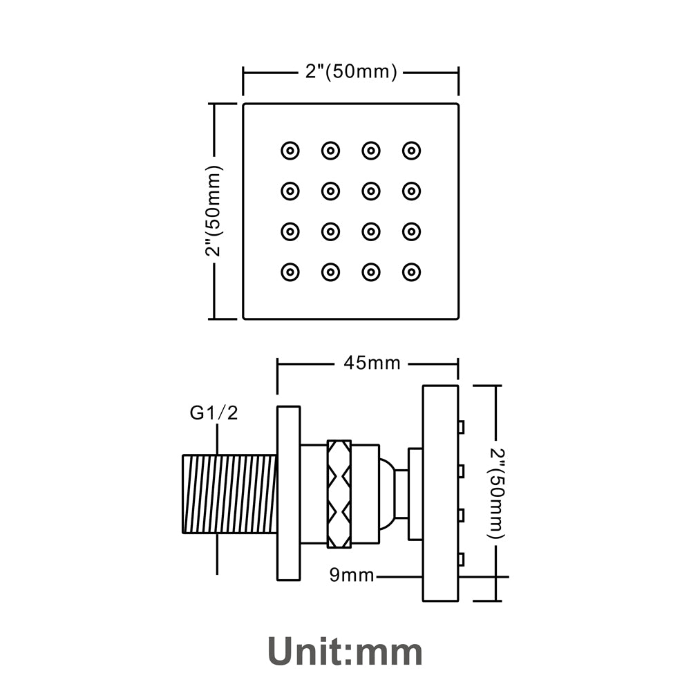 Brass handheld shower, 59inch shower hose,4 function brass thermostatic valve that each functions work at the same time and seperately. 6pcs 2X2INCH brass body jets.