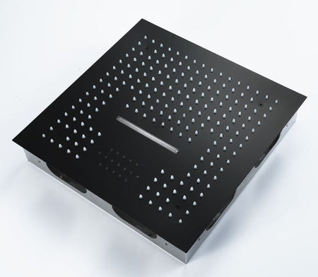 Matte black 16 inch flushed mount rainfall waterfall 64 LED light bluetooth music shower head