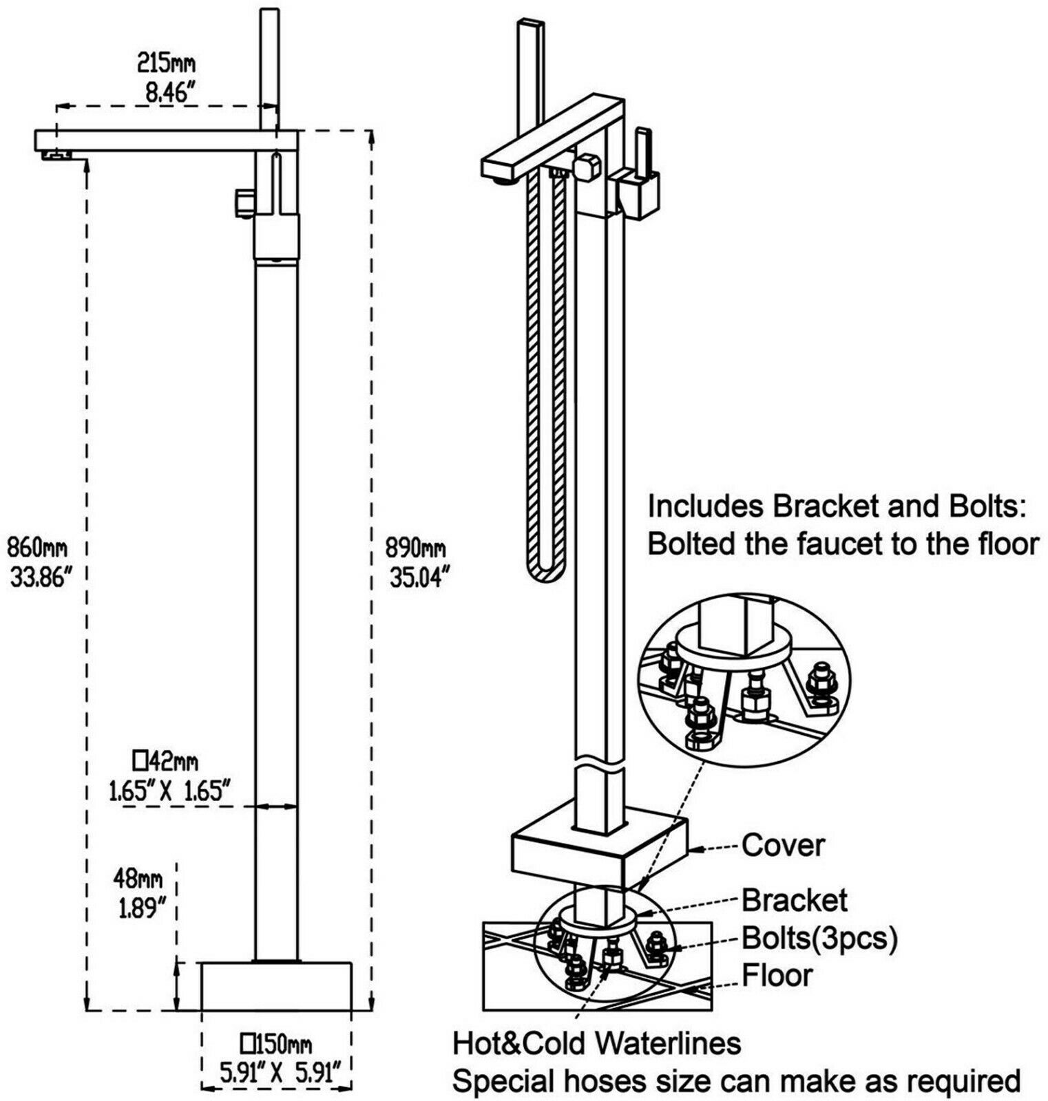 - Flow Rate: Max 6 GPM(Tub Spout); 2.5 GPM(Handheld Shower)