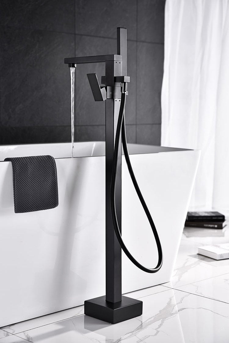 Matte Black Freestanding Single Handle Bathtub Faucet with Handheld Sprayer