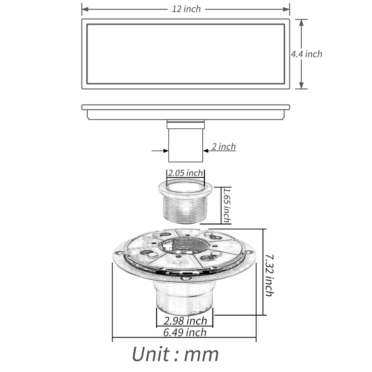 - Fits US NO HUB Drain Base System, 2'' PVC No-hub Shower Drain Base