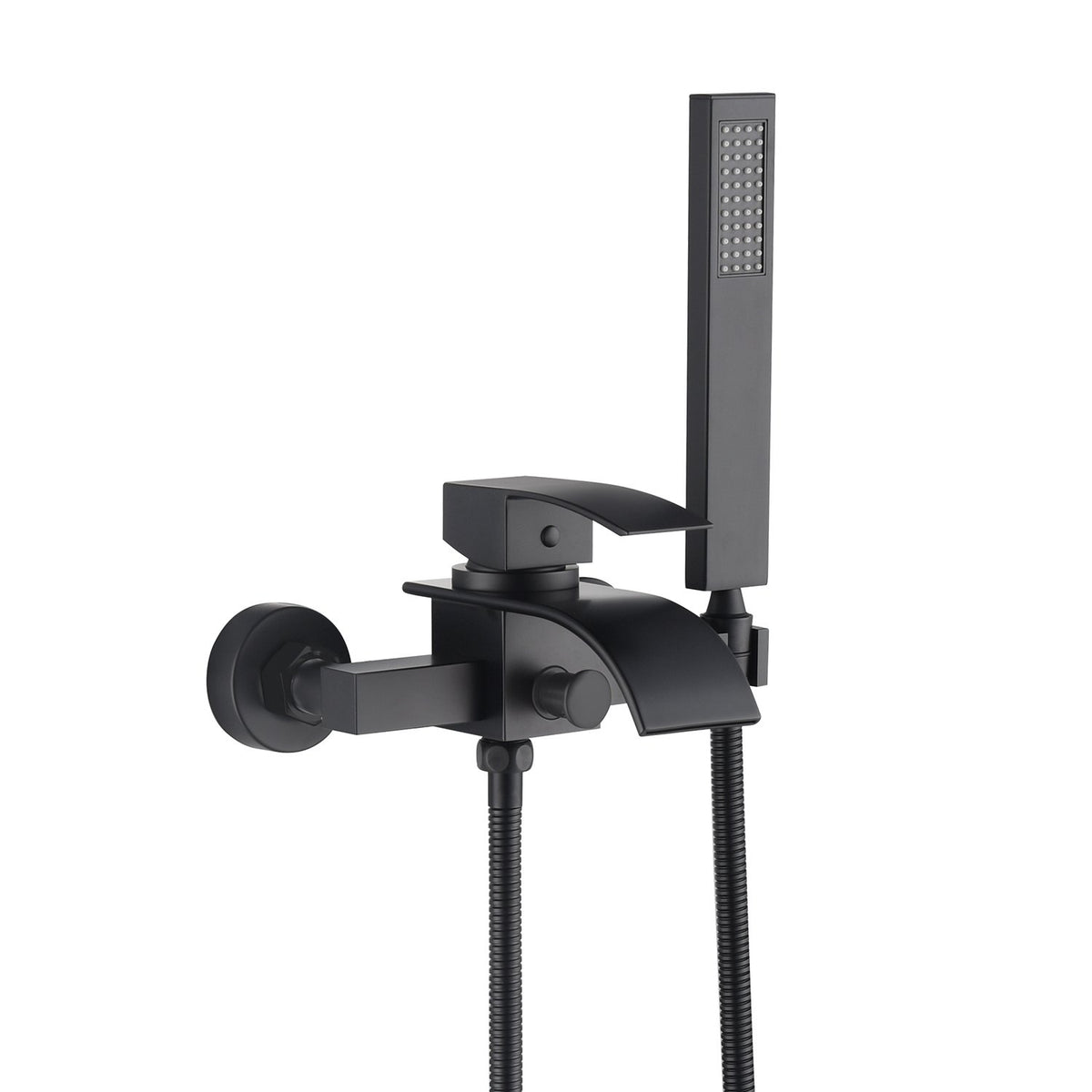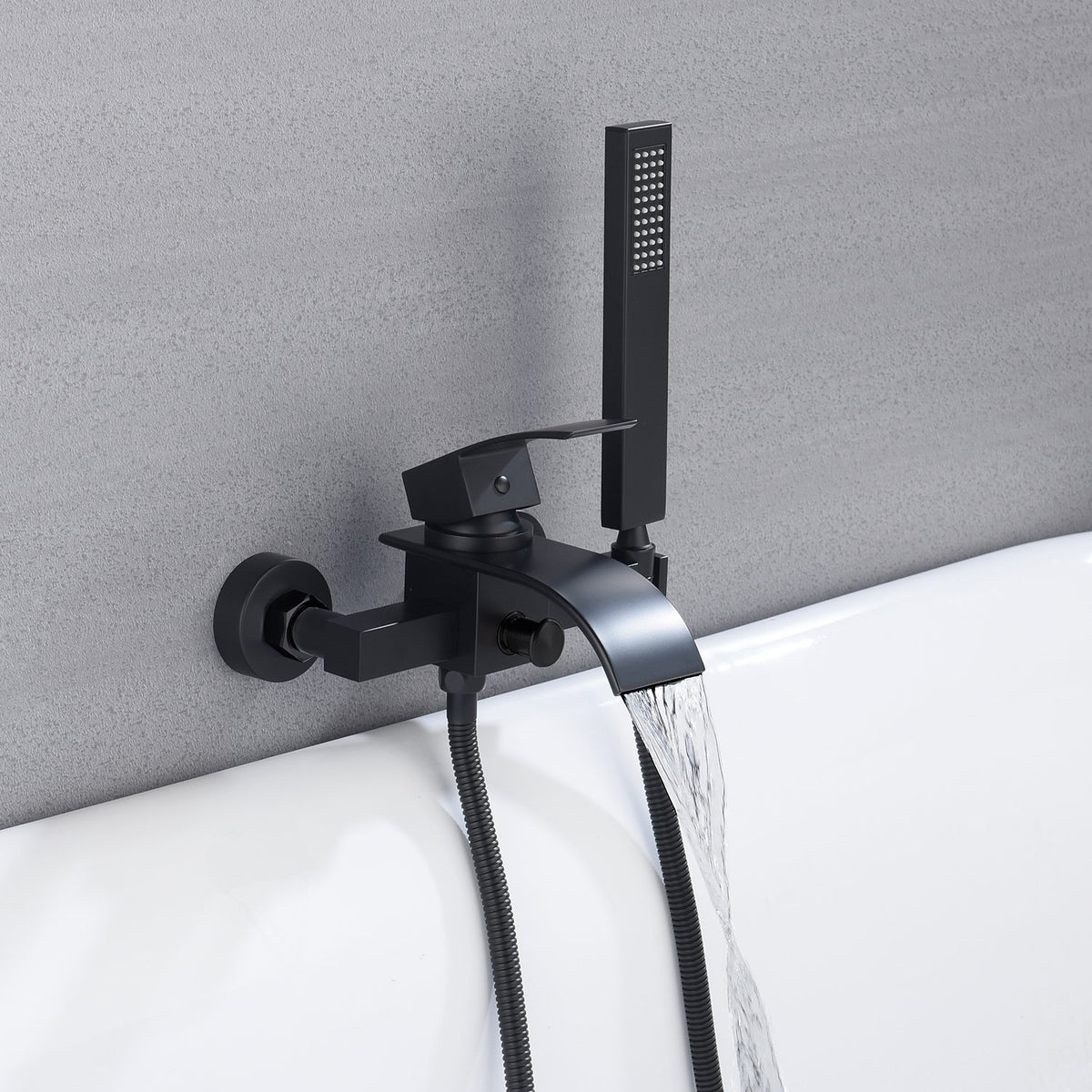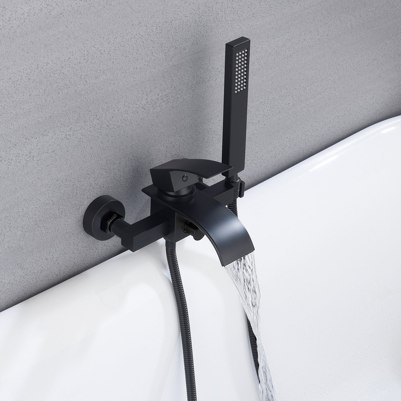 Matte Black Waterfall Wall-mount Bath Tub Filler Faucet with Handheld Shower