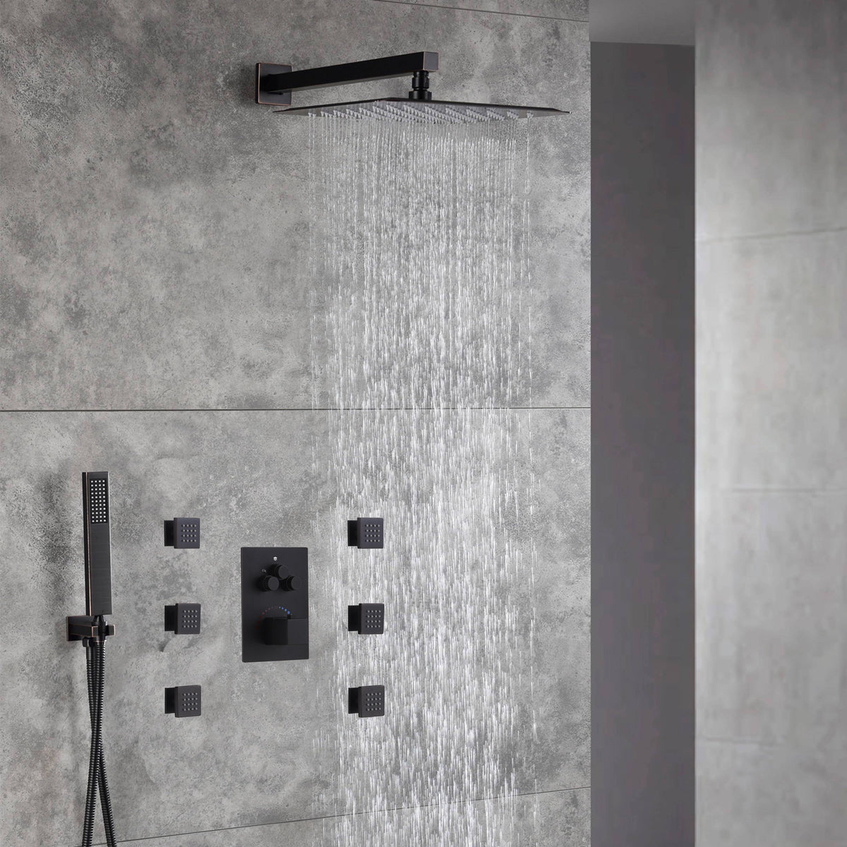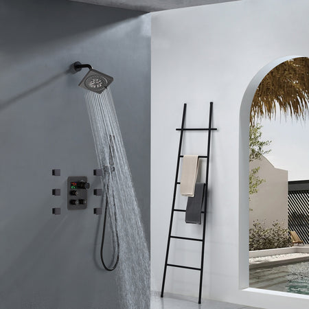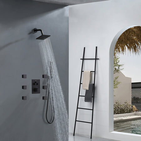 Experience unparalleled comfort, style, and functionality with our Oil Rubbed Bronze Wall-Mounted 3-Way Thermostatic Shower Faucet System. Enjoy the invigorating body jets, adjustable handheld shower, and the soothing rainfall of the Ultrathin raining sprinkler, all while benefiting from the anti-scald protection and energy-saving features. Elevate your shower routine to a new level of luxury with this exceptional shower system.