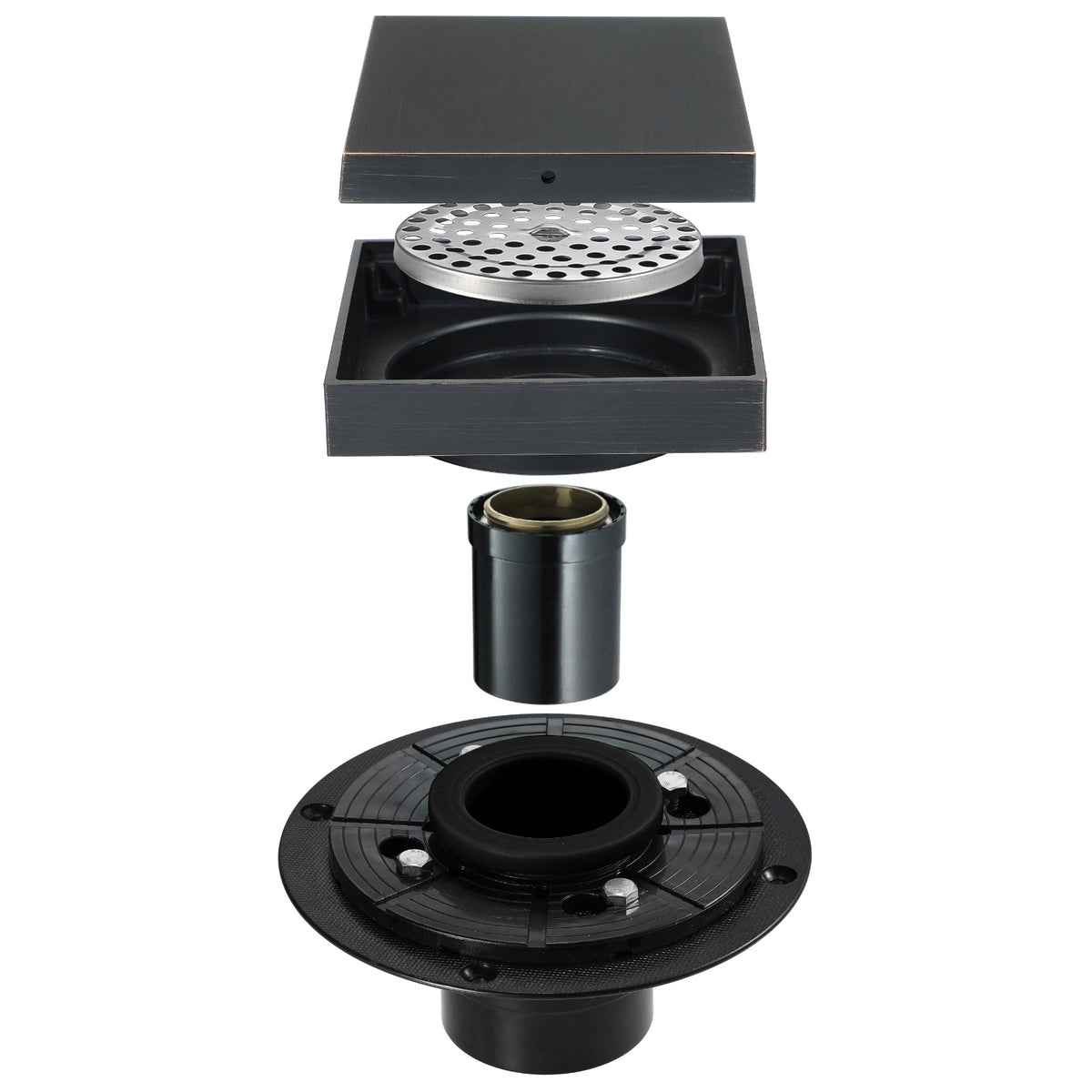 Oil rubbered bronze brass shower drain 4 inch square with ABS base