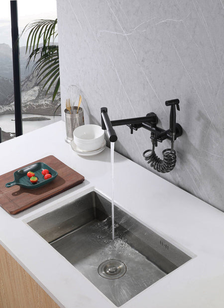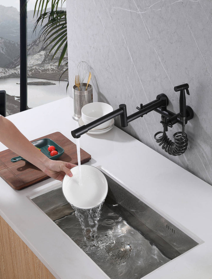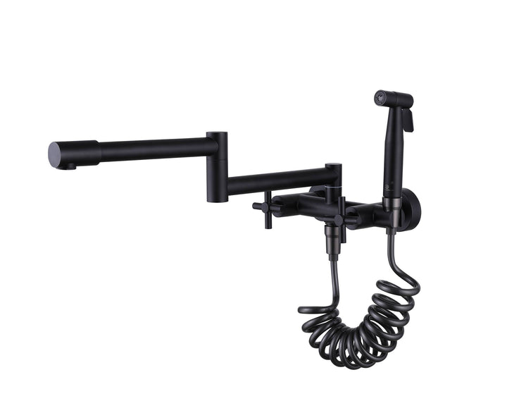Matte black Pot Filler Faucet Folding Stretchable Brass Hot & Cold Kitchen Faucet Wall Mount