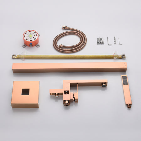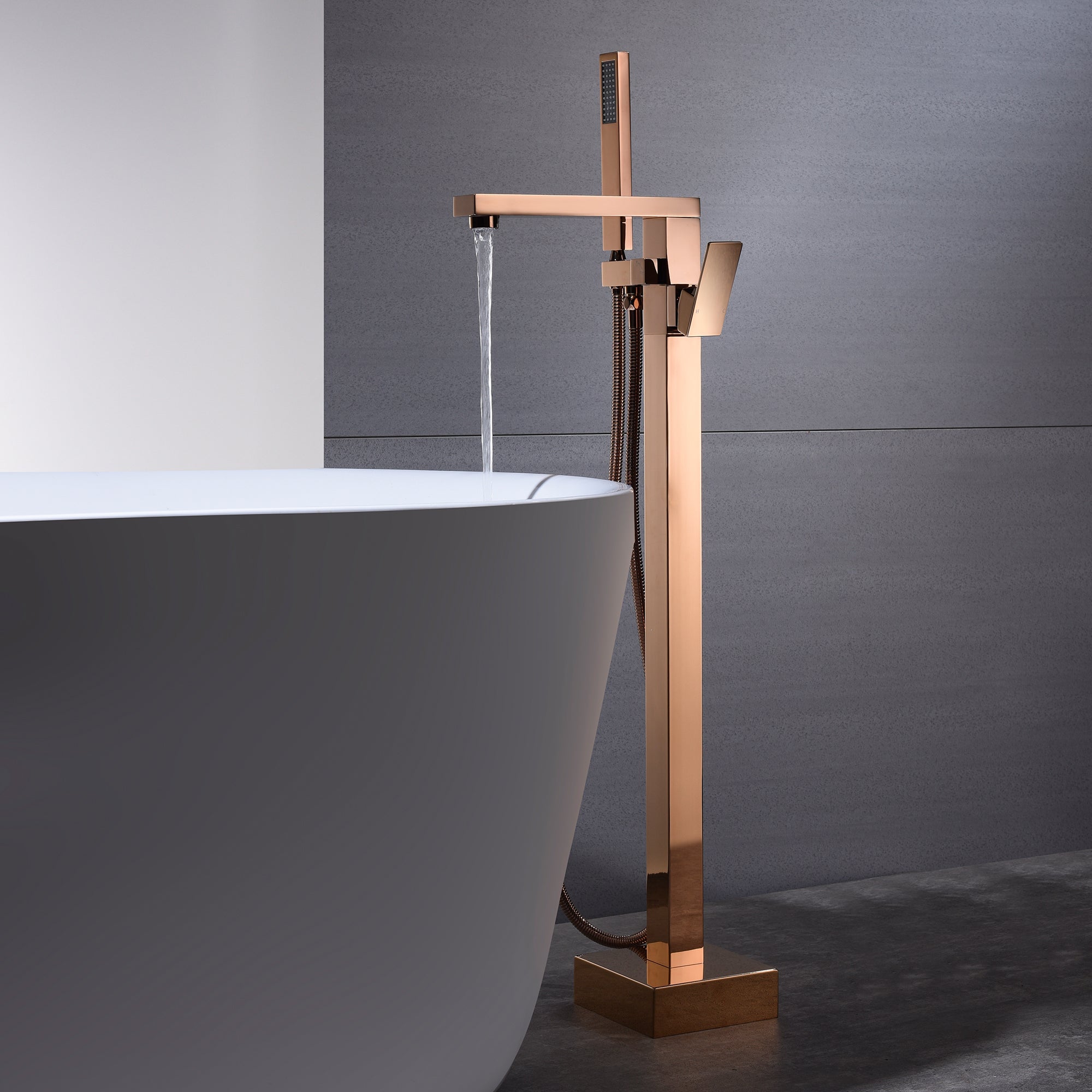 Rose Gold Finish Single Handle Floor Mount Freestanding Tub Filler Faucet with Hand Shower