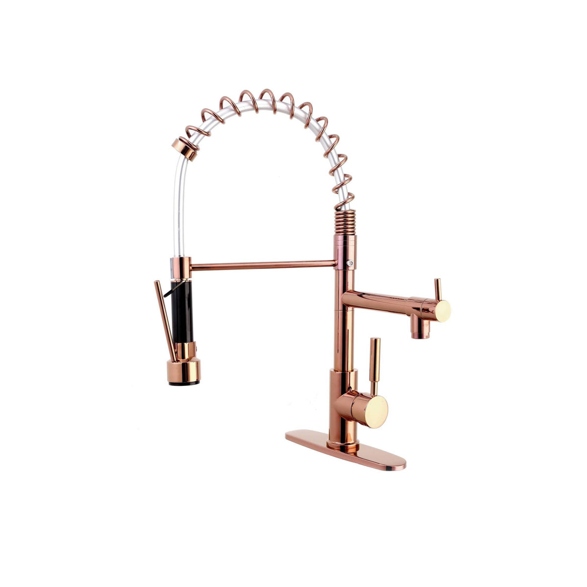 Rose Gold High Arc brass Kitchen Sink Faucet Pull Down Spray with lock ring and deck plate