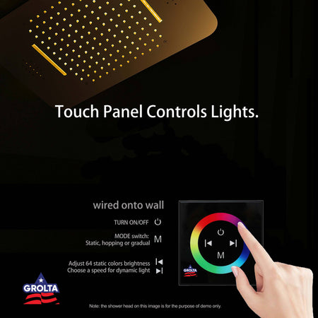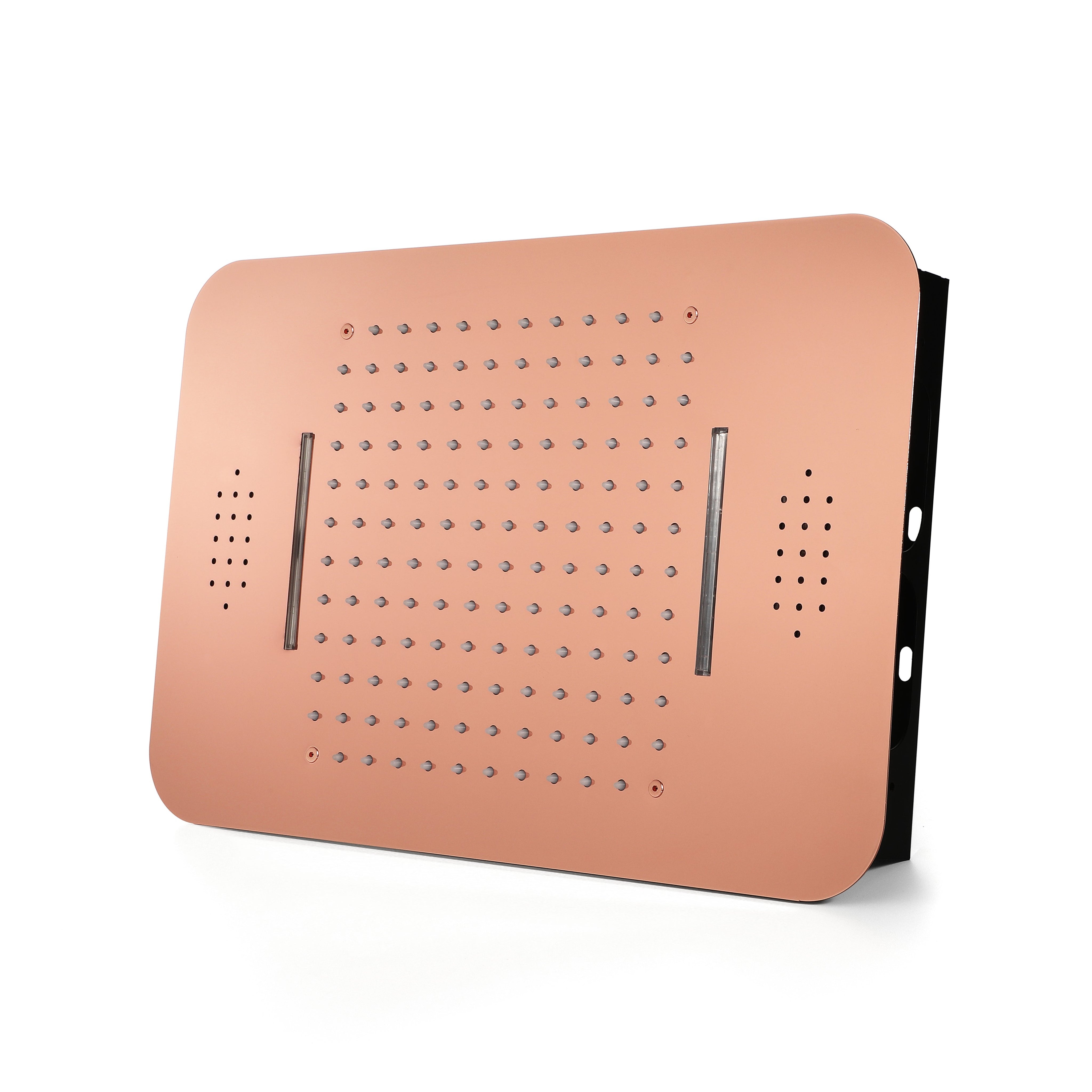 Rose Gold Music LED Flushed in 23X 15inch shower head 4 way thermostatic valve that each function run All together and separately