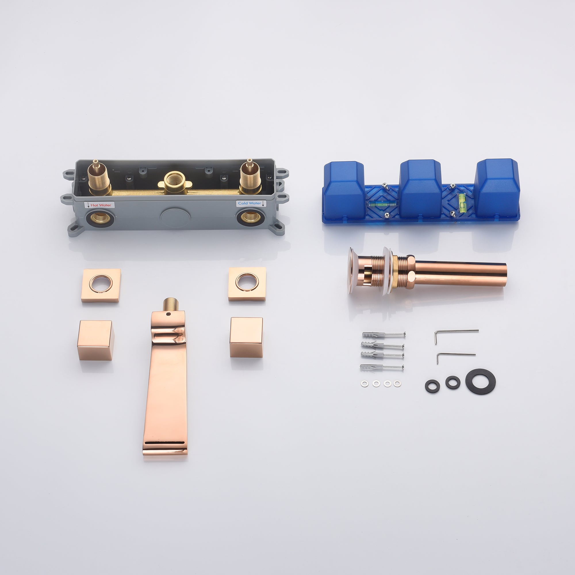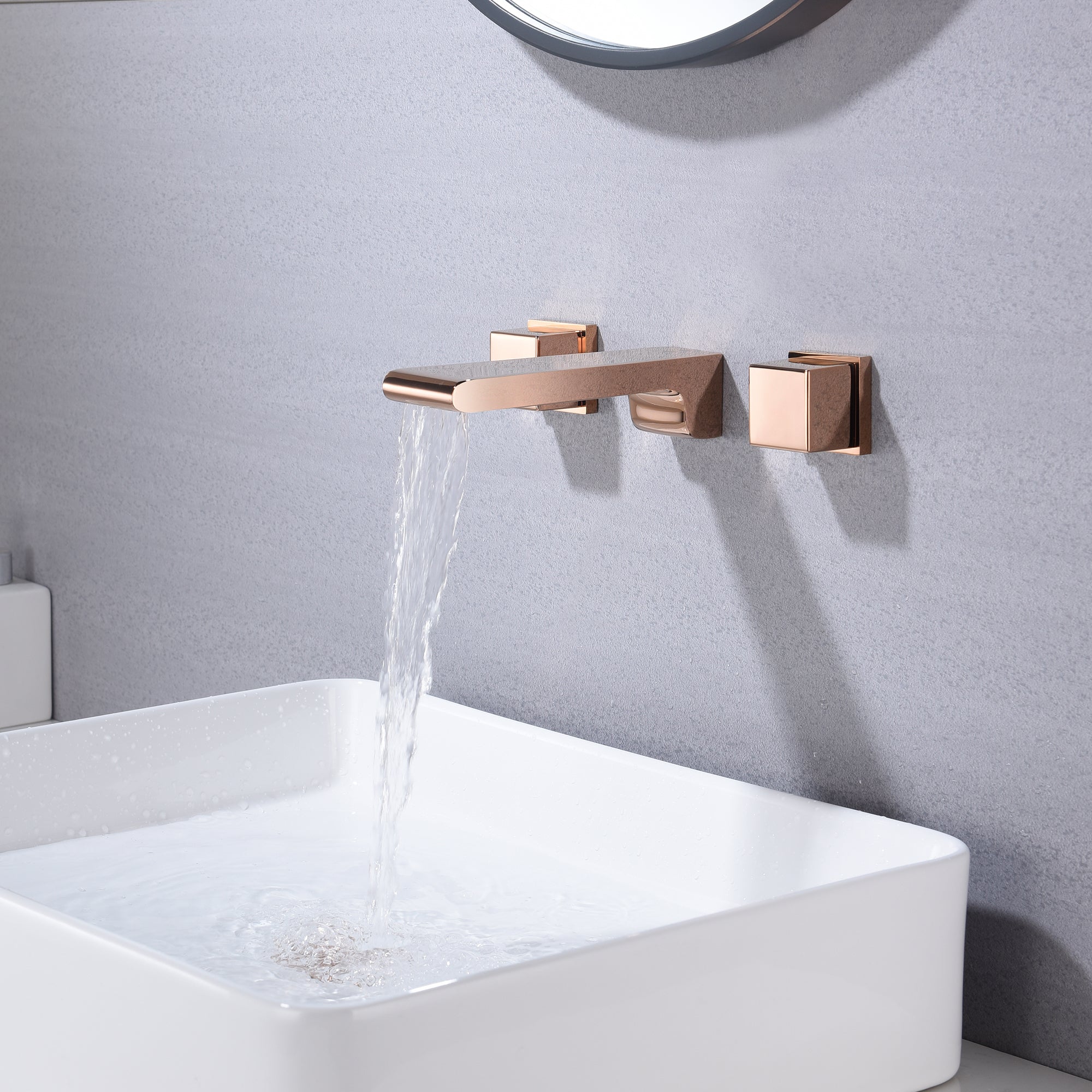 Rose Gold waterfall wall mount bathroom sink faucet with overflow brass pop up drain