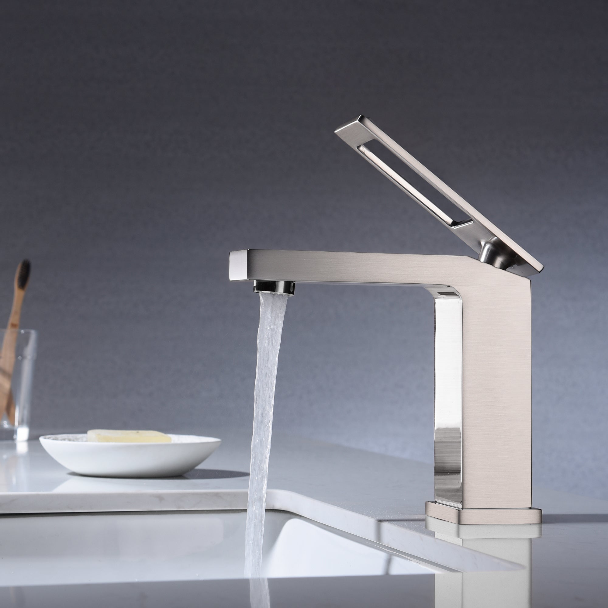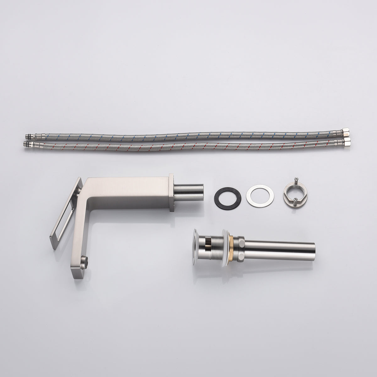 Brushed Nickel Single Handle Bathroom Sink Faucets with Brass Pop up Overflow Drain