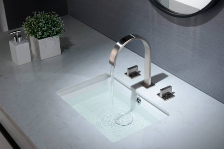 Brushed Nickel Two Handles 3 holes Waterfall Bathroom Sink Faucets with Brass Pop up Overflow Drain