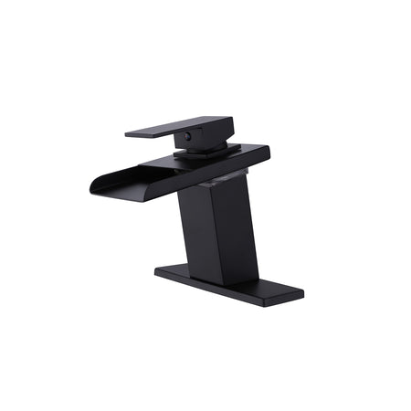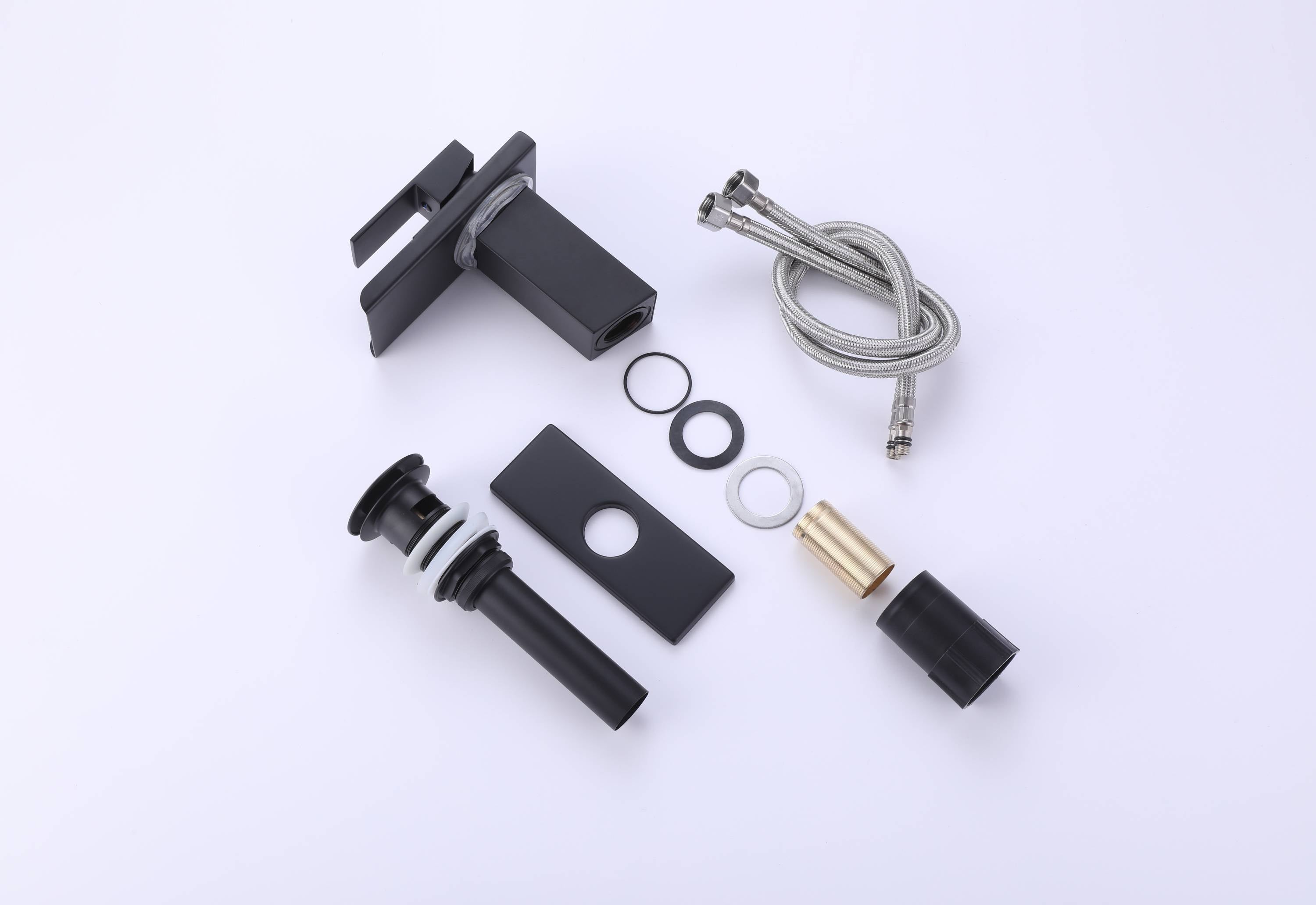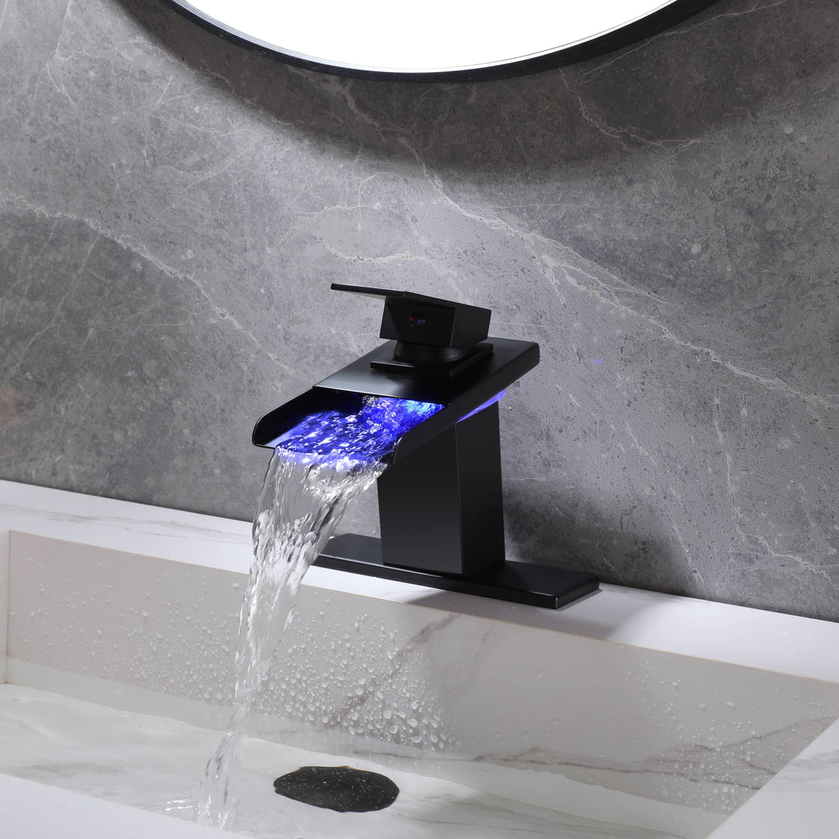 Matte Black Waterfall 3 Color LED Lights Single Handle Bathroom Sink Faucet Set with Cover And Pop Up Brass Overflow Drain