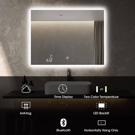Revolutionize Your Bathroom with our Smart Bluetooth Vanity Mirror: Available in 36”x36” or 72'' x 36'' Sizes, this mirror is the perfect blend of functionality and style. Before ordering, please measure the space for hanging the mirror and select the appropriate size and hanging direction.