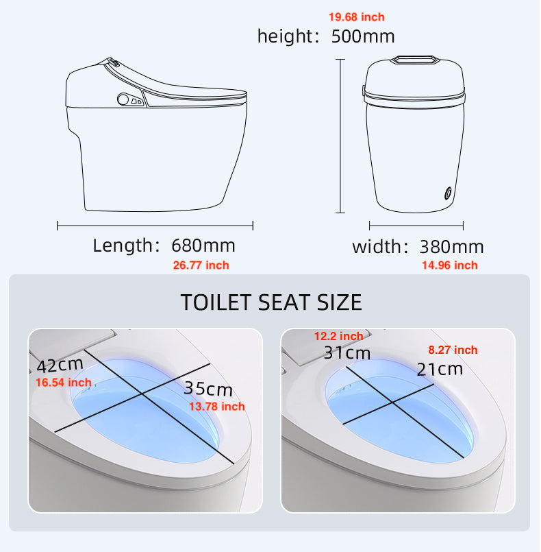 Smart Toilet Bidet Elongated Seat Unlimited Warm Water Wand Cleaning Remote Control Night Light