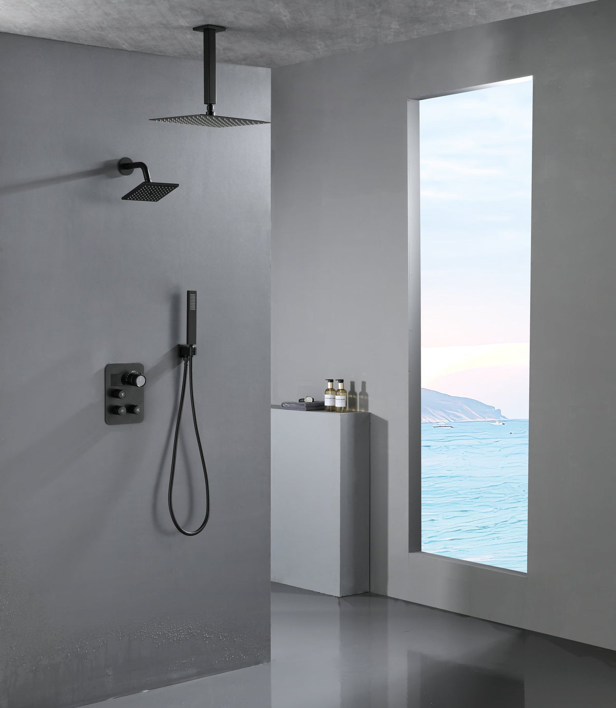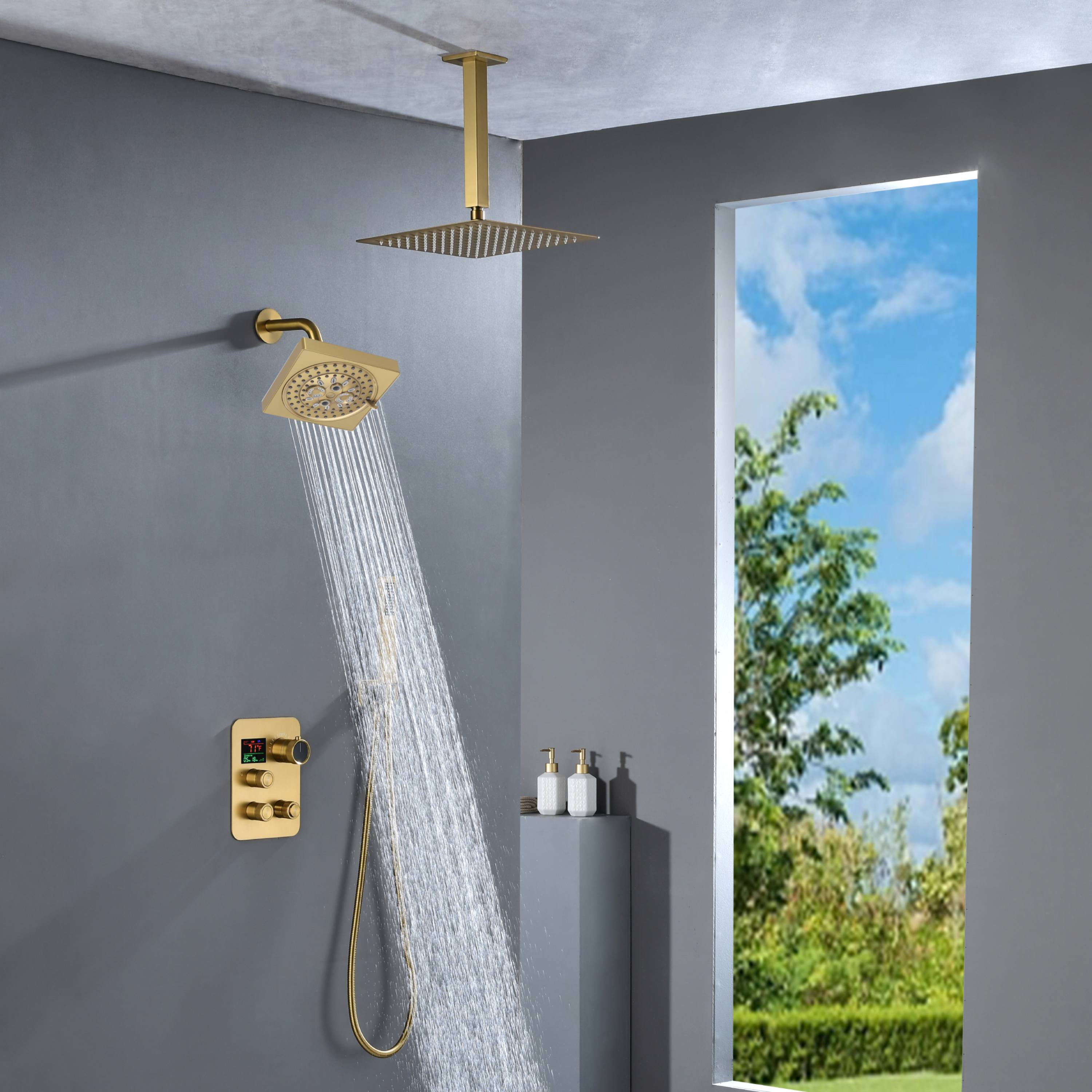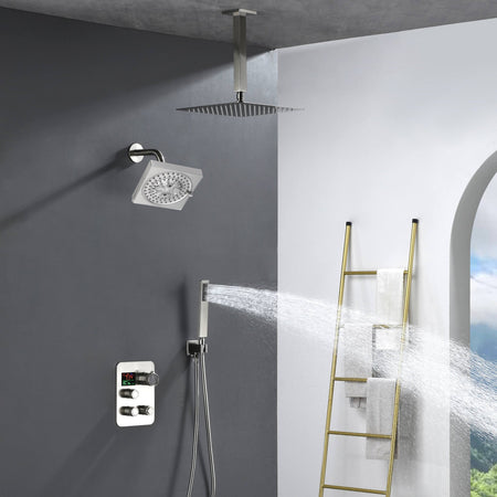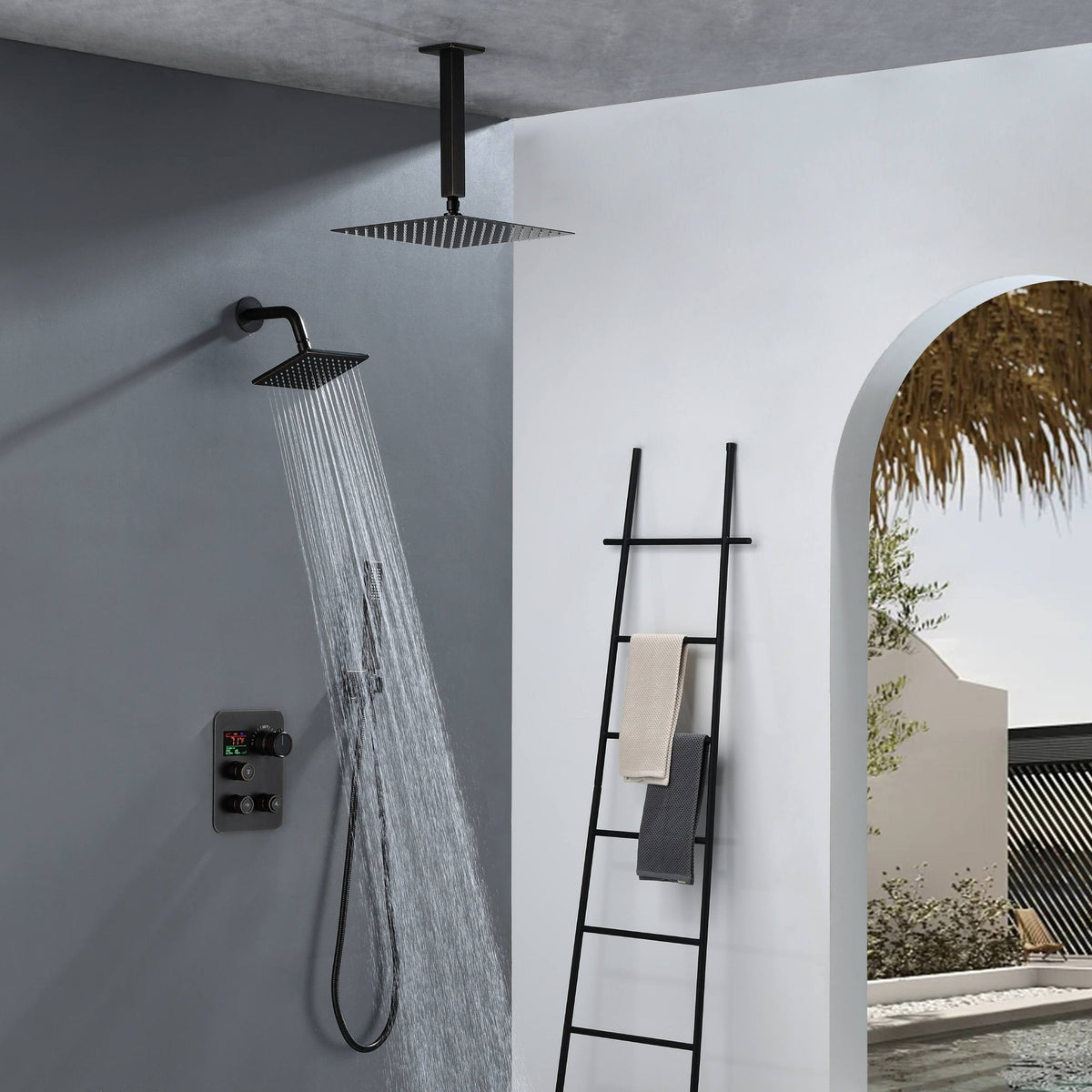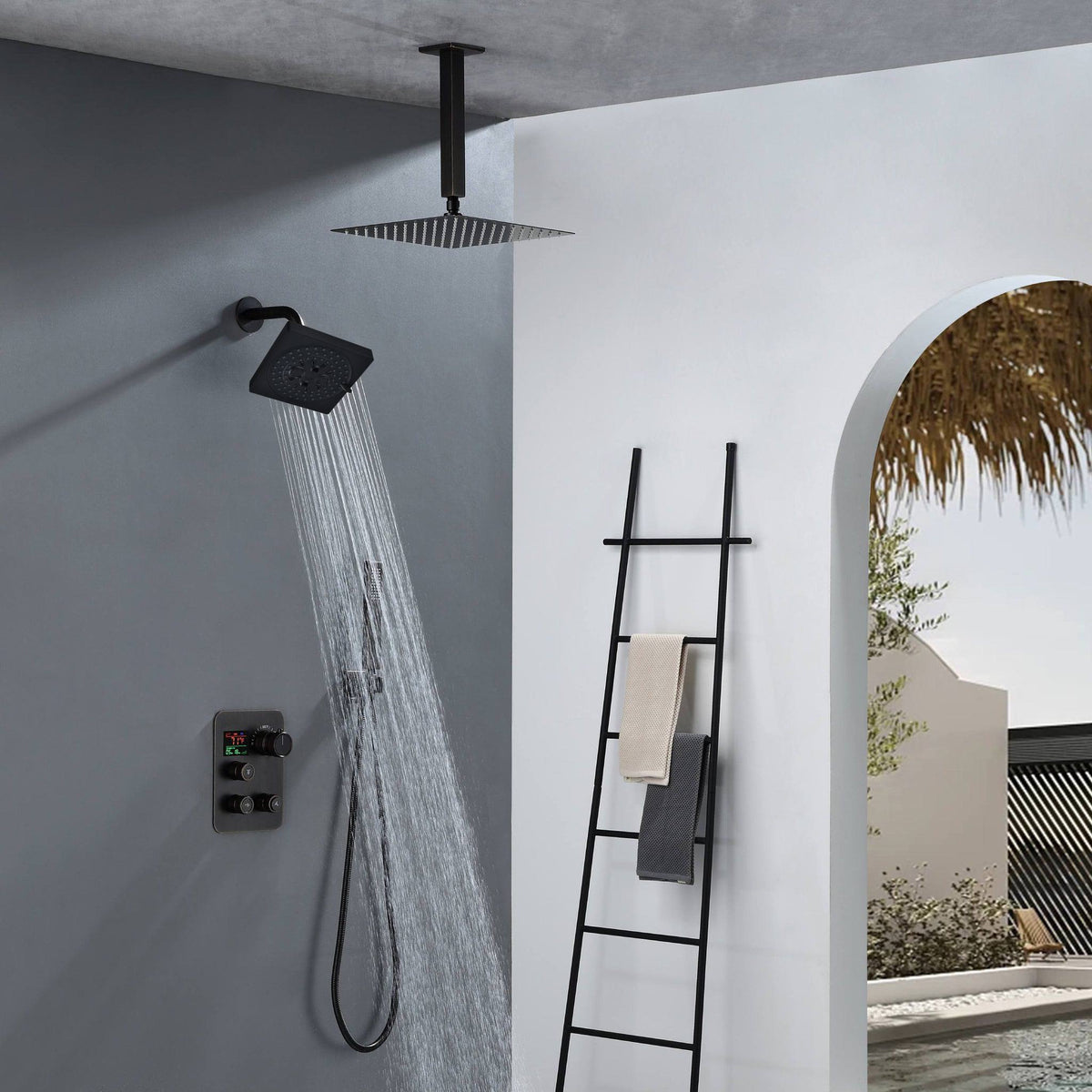 wall mount 6inch regular high water pressure shower head ceiling mount 16 inch or 12 inch rainfall shower head 3 way Digital Display thermostatic shower system