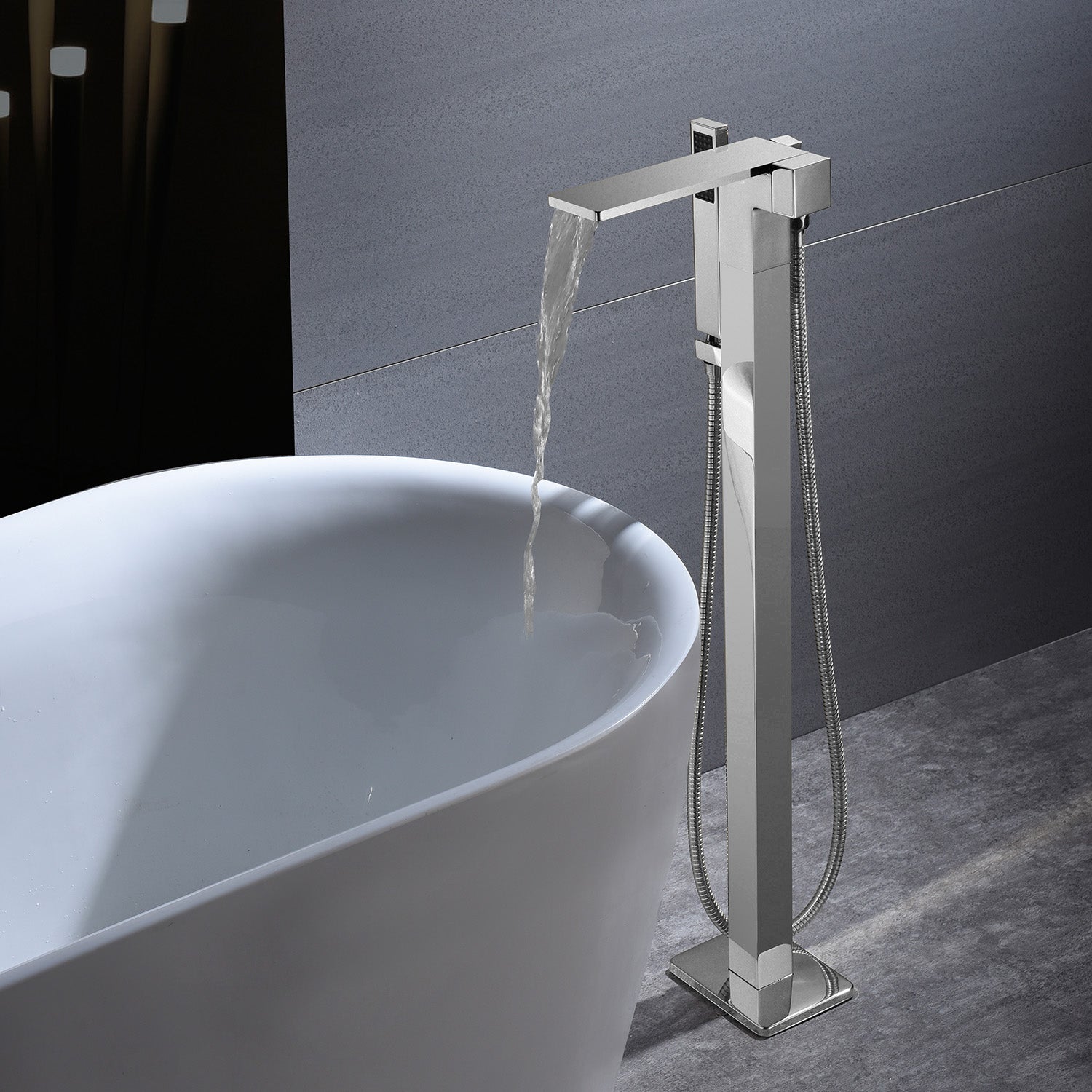 waterfall High quality Freestanding Bathtub Faucet Tub Filler Brushed Nickel Waterfall Floor Mount